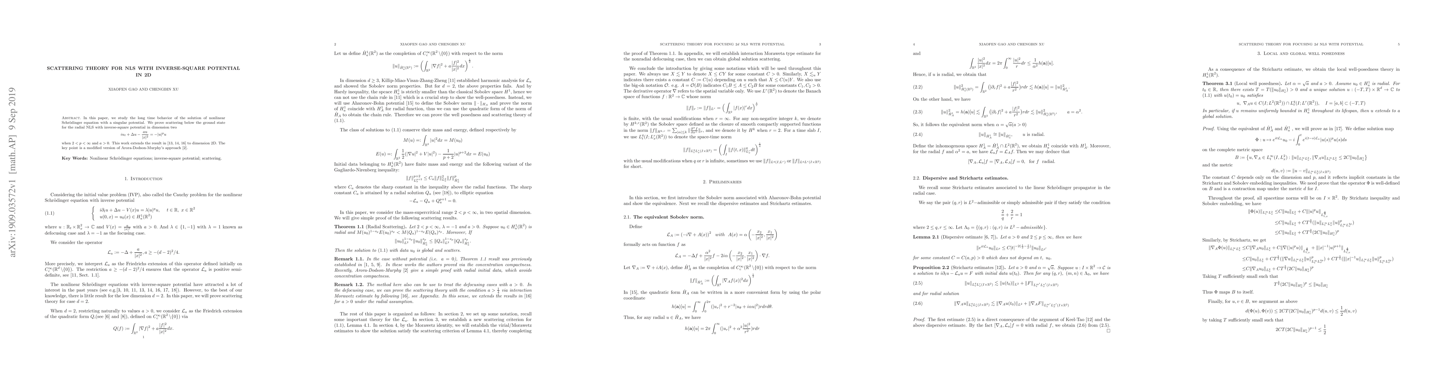 This paper investigates the long-time behavior of solutions to a nonlinear Schrödinger equation with an inverse-square potential in two dimensions, proving scattering below the ground state. The approach builds on a modified version of Arora-Dodson-Murphy's method to extend prior results to 2D.