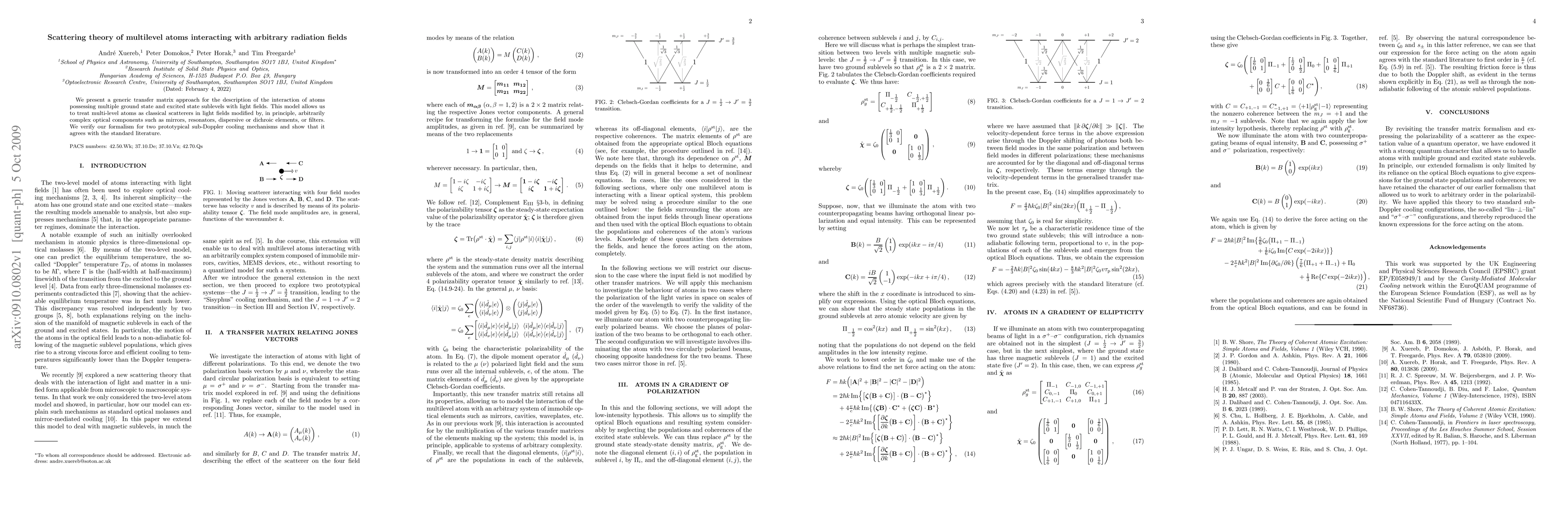 We present a generic transfer matrix approach for the description of the interaction of atoms possessing multiple ground state and excited state sublevels with light fields. This model allows us to treat multi-level atoms as classical scatterers in light fields modified by, in principle, arbitrarily complex optical components such as mirrors, resonators, dispersive or dichroic elements, or filters. We verify our formalism for two prototypical sub-Doppler cooling mechanisms and show that it agrees with the standard literature.