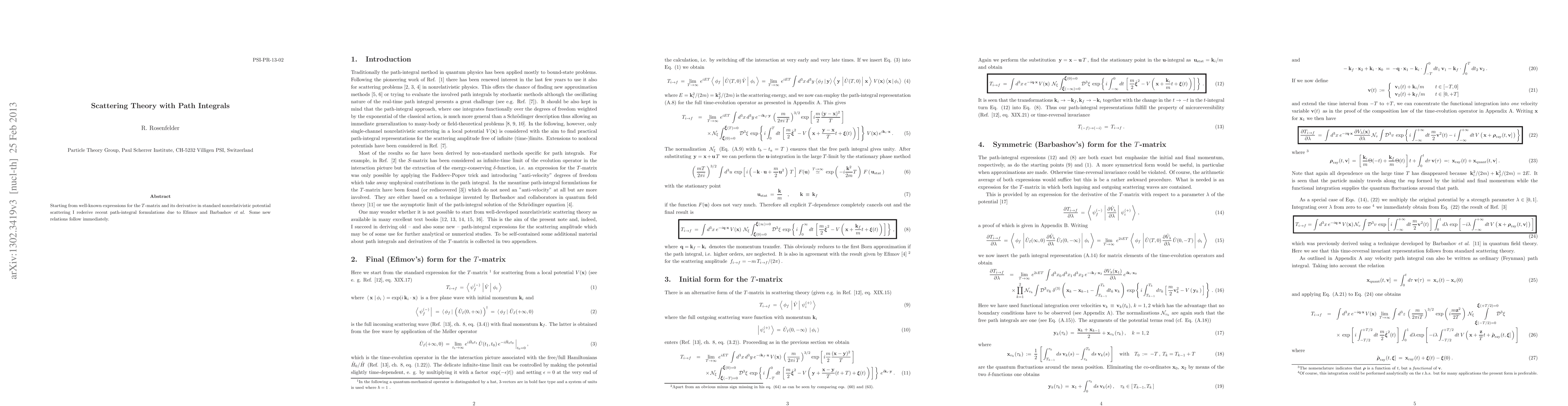 Starting from well-known expressions for the $T$-matrix and its derivative in standard nonrelativistic potential scattering I rederive recent path-integral formulations due to Efimov and Barbashov et al. Some new relations follow immediately.