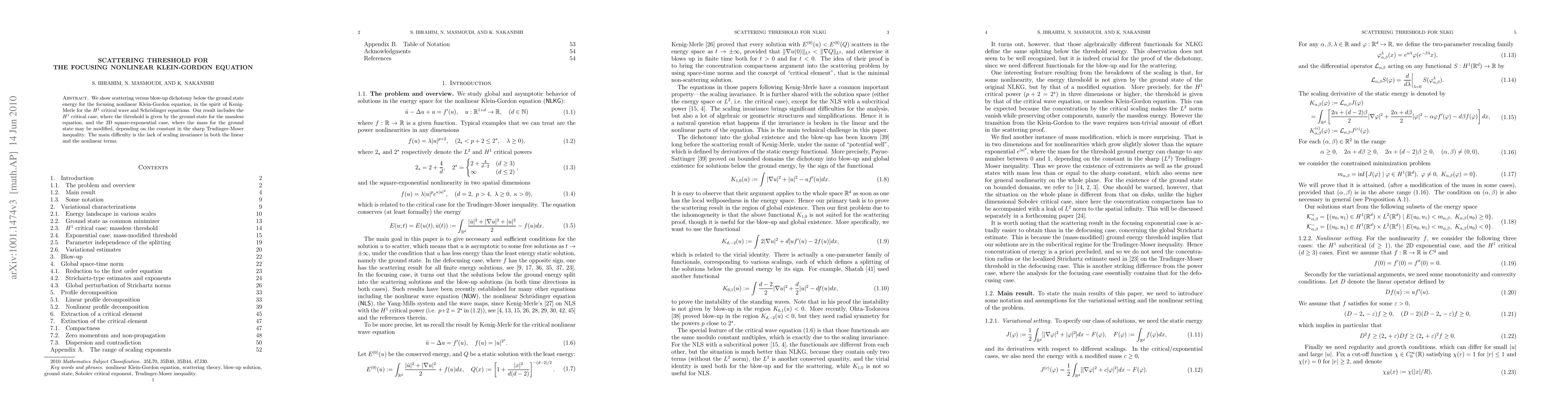 This paper demonstrates the dichotomy between scattering and blow-up for the focusing nonlinear Klein-Gordon equation below the ground state energy, analogous to Kenig-Merle's results for critical wave and Schrödinger equations. It addresses the $H^1$ critical case and 2D square-exponential case, highlighting the lack of scaling invariance as a main challenge.