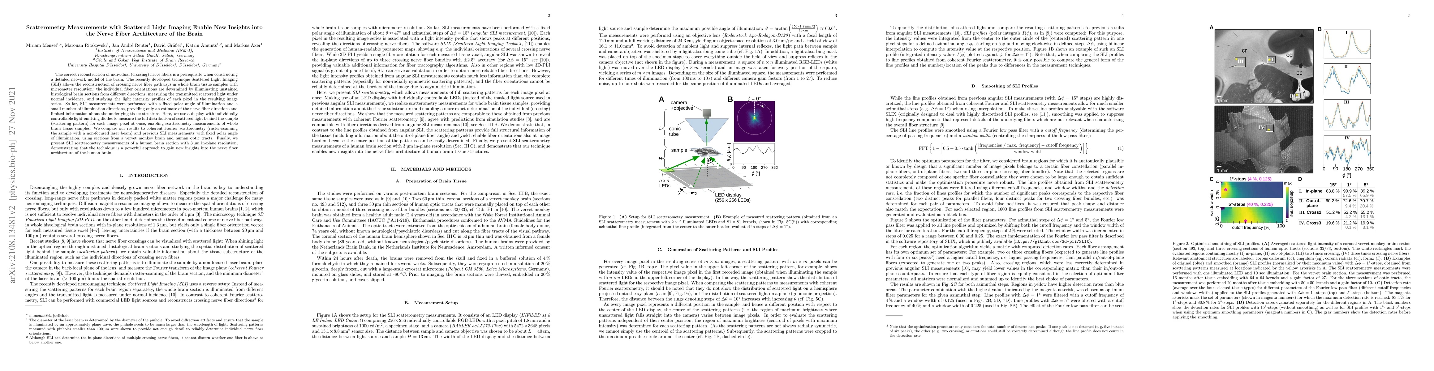 This paper introduces Scattered Light Imaging (SLI) scatterometry for reconstructing nerve fiber pathways in the brain with micrometer resolution. By using an LED display to measure scattered light patterns, the technique provides detailed insights into the nerve fiber architecture, surpassing previous methods with fixed illumination angles.