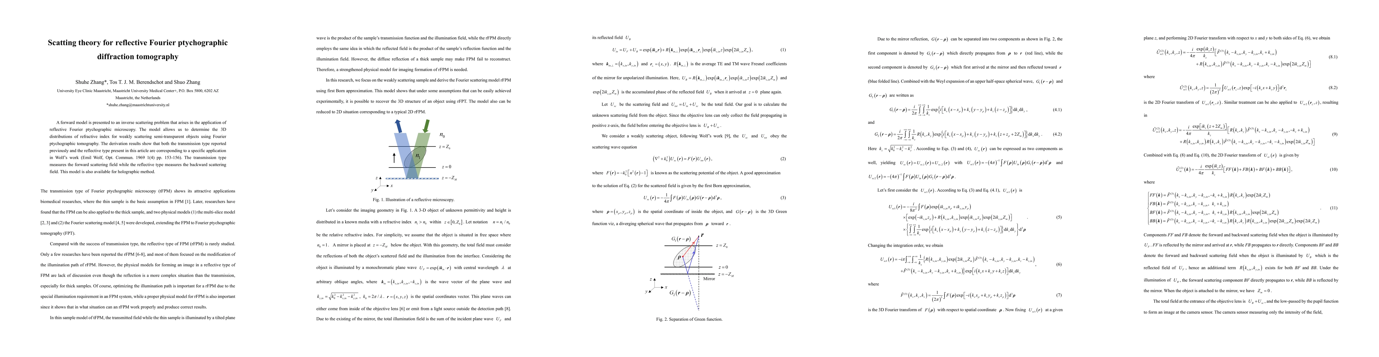 This paper presents a forward model for solving an inverse scattering problem in reflective Fourier ptychographic microscopy, enabling the 3D refractive index distribution determination of weakly scattering semi-transparent objects. The model extends Wolf's theory to both transmission and reflective scattering types, applicable to holographic methods as well.