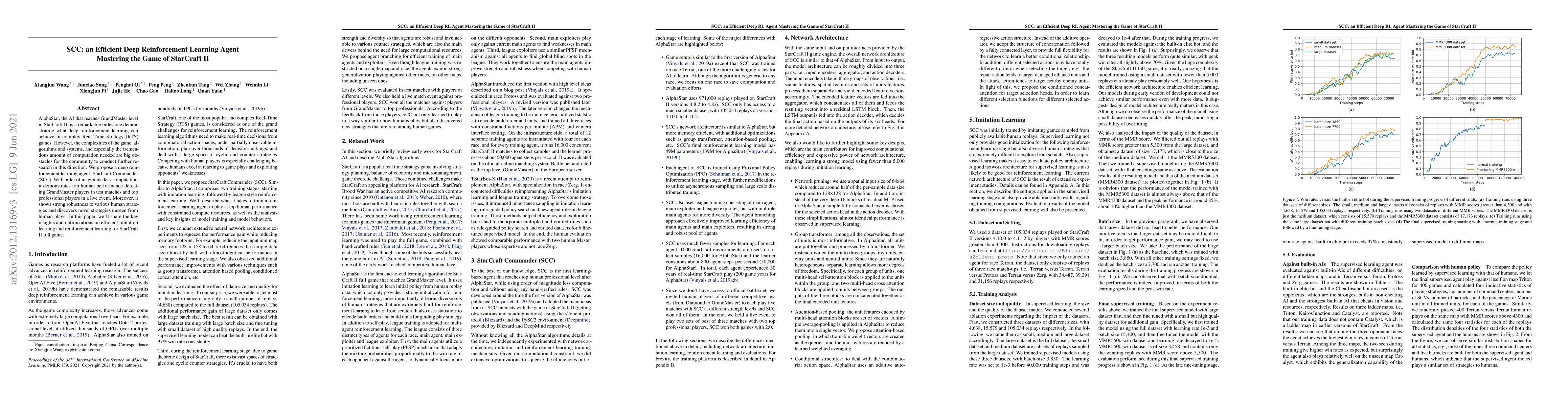 The paper introduces StarCraft Commander (SCC), a deep reinforcement learning agent achieving top human performance in StarCraft II with significantly lower computational resources compared to AlphaStar. SCC demonstrates robustness and discovers novel strategies, highlighting key insights and optimizations for efficient learning in complex RTS games.