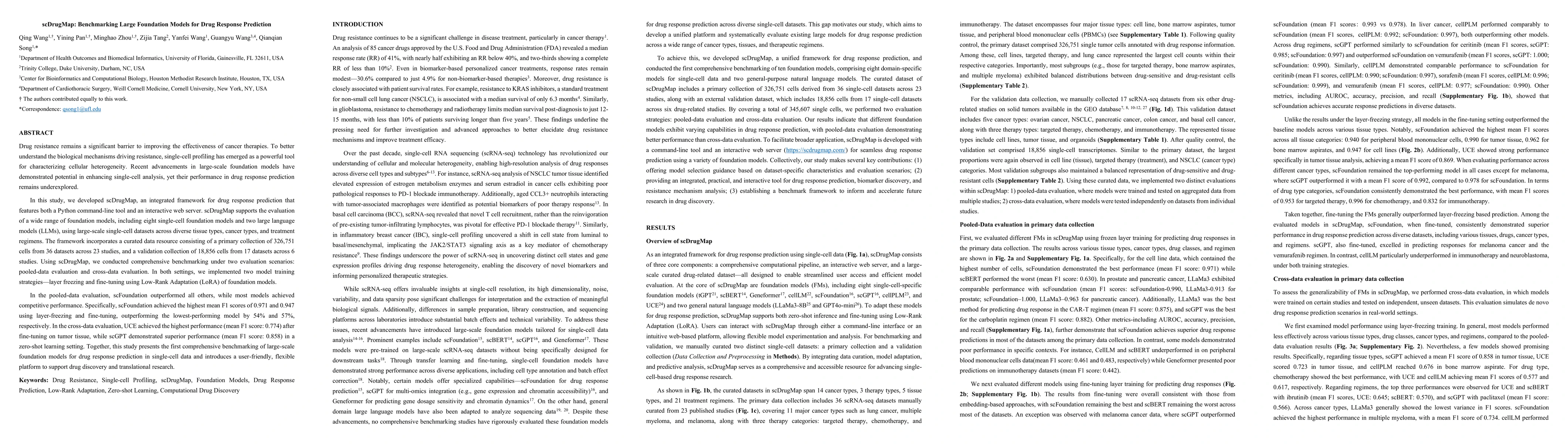 A new framework called scDrugMap benchmarks large foundation models for predicting drug response in single-cell data, outperforming existing methods with high accuracy.