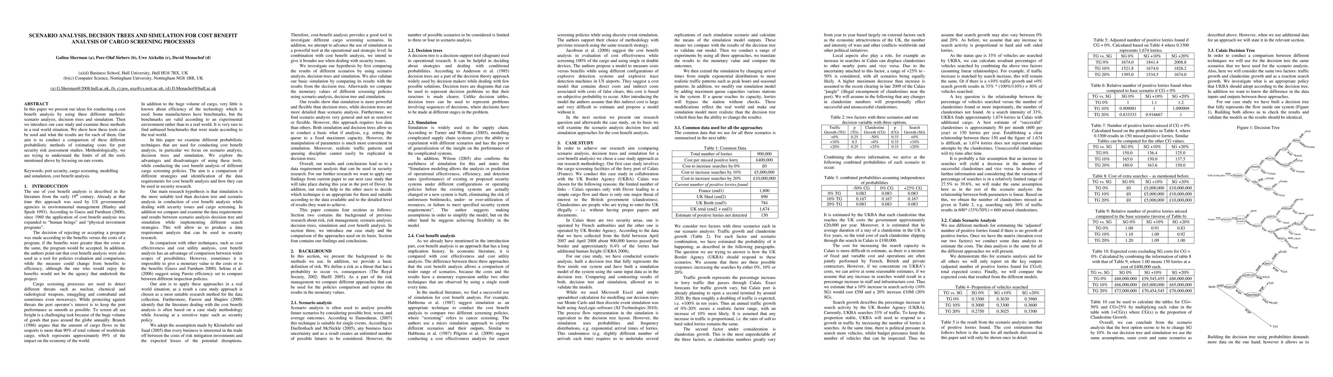 This paper explores cost benefit analysis of cargo screening using scenario analysis, decision trees, and simulation. It applies these methods to a real-world port security risk assessment, comparing their effectiveness in estimating costs and evaluating rare events.