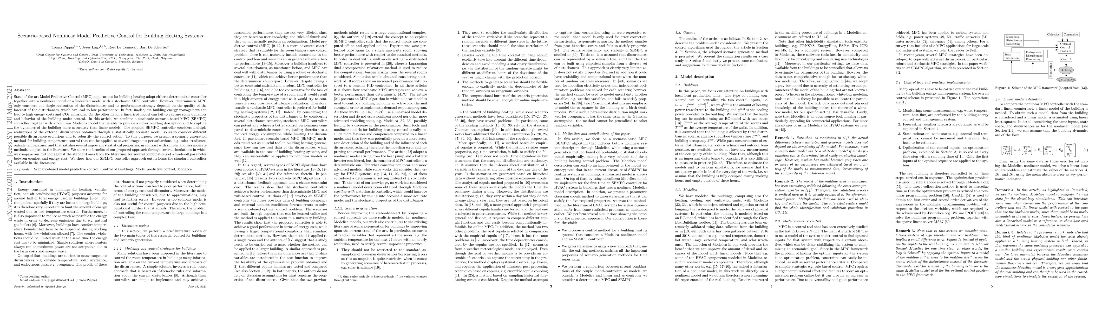 This paper proposes a scenario-based Nonlinear Model Predictive Control (NMPC) for building heating systems, combining a stochastic MPC with a nonlinear Modelica model to better capture building dynamics. The approach robustifies control by considering multiple disturbance scenarios, leading to improved performance over traditional deterministic and linearized models.