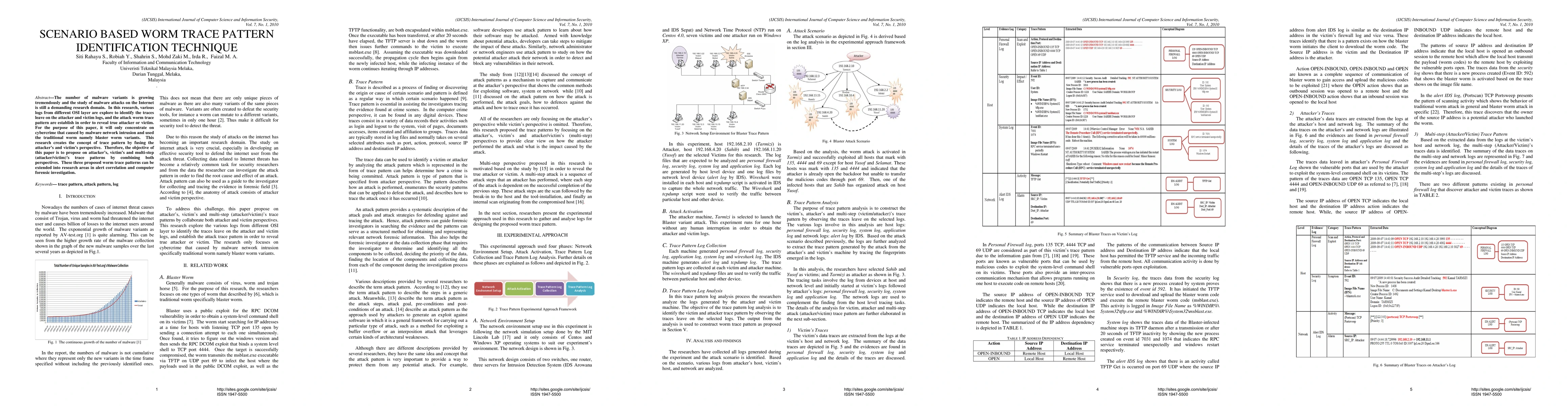 The number of malware variants is growing tremendously and the study of malware attacks on the Internet is still a demanding research domain. In this research, various logs from different OSI layer are explore to identify the traces leave on the attacker and victim logs, and the attack worm trace pattern are establish in order to reveal true attacker or victim. For the purpose of this paper, it will only concentrate on cybercrime that caused by malware network intrusion and used the traditional worm namely blaster worm variants. This research creates the concept of trace pattern by fusing the attackers and victims perspective. Therefore, the objective of this paper is to propose on attackers, victims and multistep, attacker or victim, trace patterns by combining both perspectives. These three proposed worm trace patterns can be extended into research areas in alert correlation and computer forensic investigation.