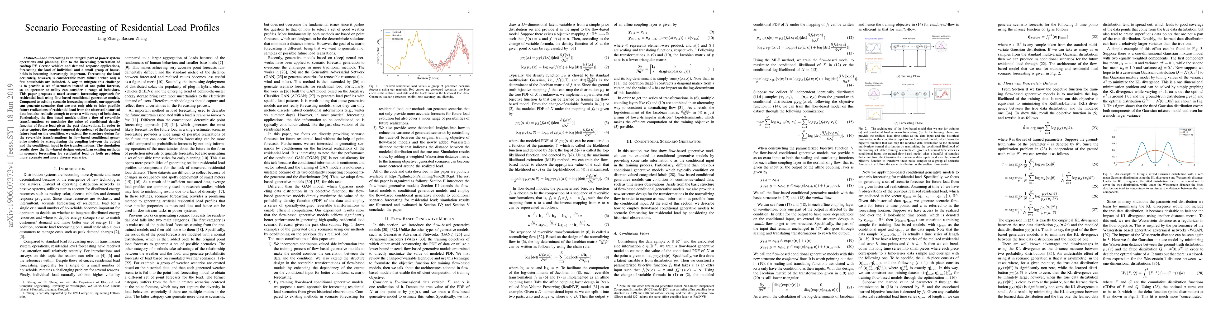 This paper proposes a novel scenario forecasting approach for residential load using flow-based conditional generative models, which generate diverse and accurate future load realizations by leveraging reversible transformations to maximize conditional density. The enhanced model structure captures complex temporal dependencies, outperforming existing methods in both accuracy and diversity of scenarios.