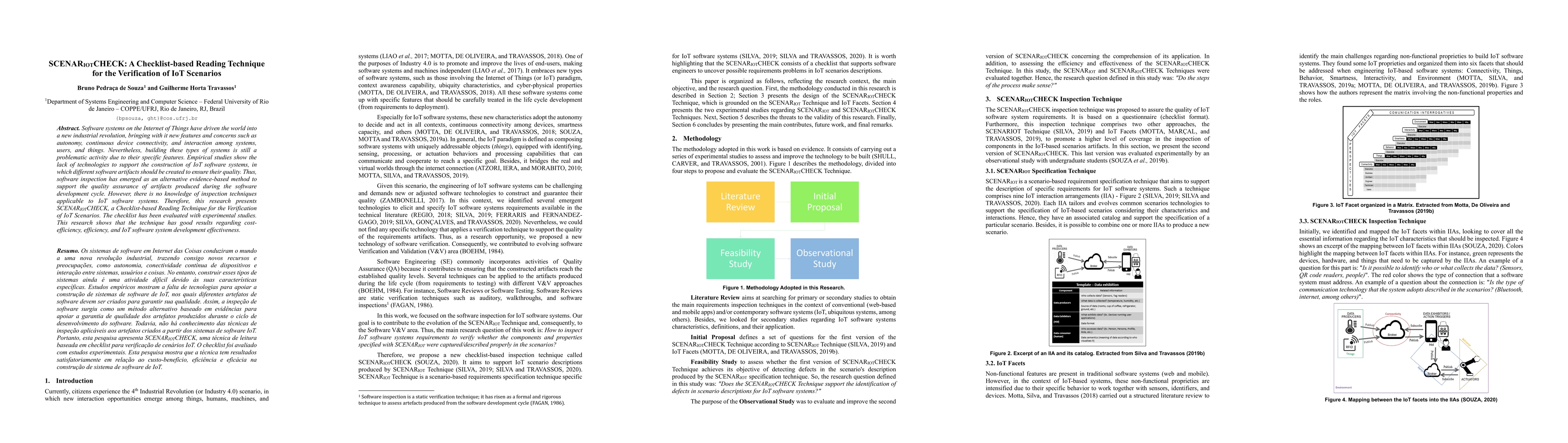 Software systems on the Internet of Things have driven the world into a new industrial revolution, bringing with it new features and concerns such as autonomy, continuous device connectivity, and interaction among systems, users, and things. Nevertheless, building these types of systems is still a problematic activity due to their specific features. Empirical studies show the lack of technologies to support the construction of IoT software systems, in which different software artifacts should be created to ensure their quality. Thus, software inspection has emerged as an alternative evidence-based method to support the quality assurance of artifacts produced during the software development cycle. However, there is no knowledge of inspection techniques applicable to IoT software systems. Therefore, this research presents SCENARIOTCHECK, a Checklist-based Reading Technique for the Verification of IoT Scenarios. The checklist has been evaluated with experimental studies. This research shows that the technique has good results regarding cost-efficiency, efficiency, and IoT software system development effectiveness.