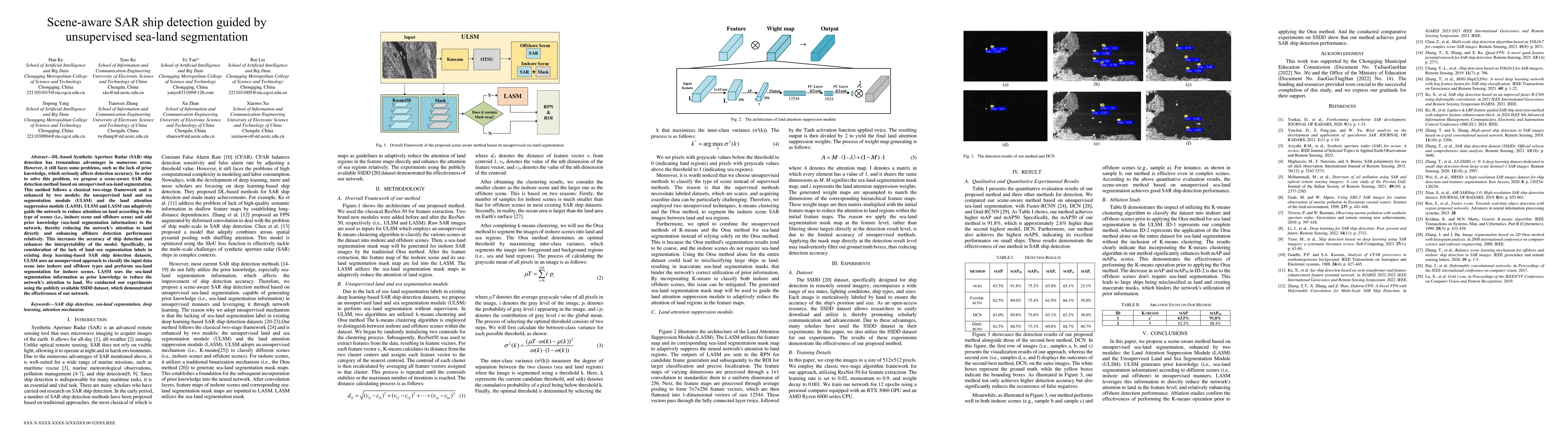 DL based Synthetic Aperture Radar (SAR) ship detection has tremendous advantages in numerous areas. However, it still faces some problems, such as the lack of prior knowledge, which seriously affects detection accuracy. In order to solve this problem, we propose a scene-aware SAR ship detection method based on unsupervised sea-land segmentation. This method follows a classical two-stage framework and is enhanced by two models: the unsupervised land and sea segmentation module (ULSM) and the land attention suppression module (LASM). ULSM and LASM can adaptively guide the network to reduce attention on land according to the type of scenes (inshore scene and offshore scene) and add prior knowledge (sea land segmentation information) to the network, thereby reducing the network's attention to land directly and enhancing offshore detection performance relatively. This increases the accuracy of ship detection and enhances the interpretability of the model. Specifically, in consideration of the lack of land sea segmentation labels in existing deep learning-based SAR ship detection datasets, ULSM uses an unsupervised approach to classify the input data scene into inshore and offshore types and performs sea-land segmentation for inshore scenes. LASM uses the sea-land segmentation information as prior knowledge to reduce the network's attention to land. We conducted our experiments using the publicly available SSDD dataset, which demonstrated the effectiveness of our network.