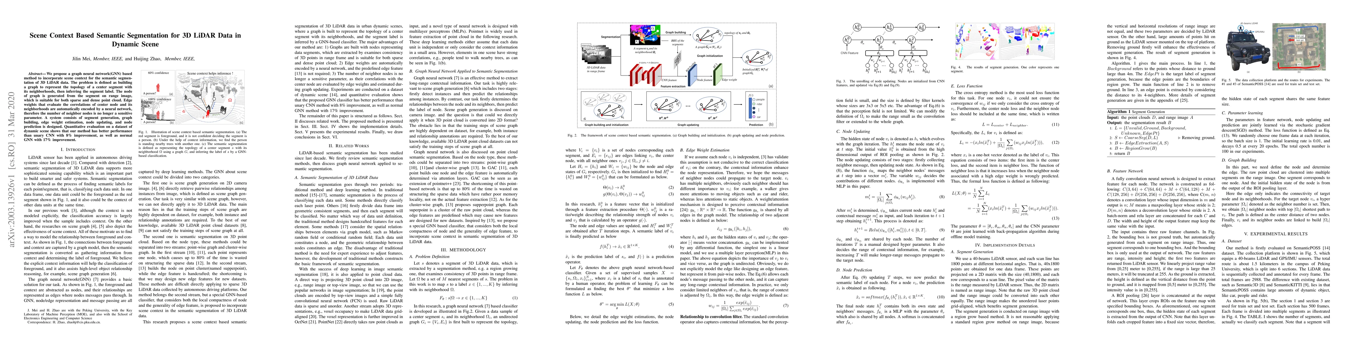 This paper proposes a graph neural network (GNN) method for semantic segmentation of 3D LiDAR data by incorporating scene context. The method builds a graph representing the topology of segments and their neighborhoods, with edge weights automatically encoded by a neural network, leading to improved performance over traditional CNN and GNN approaches.