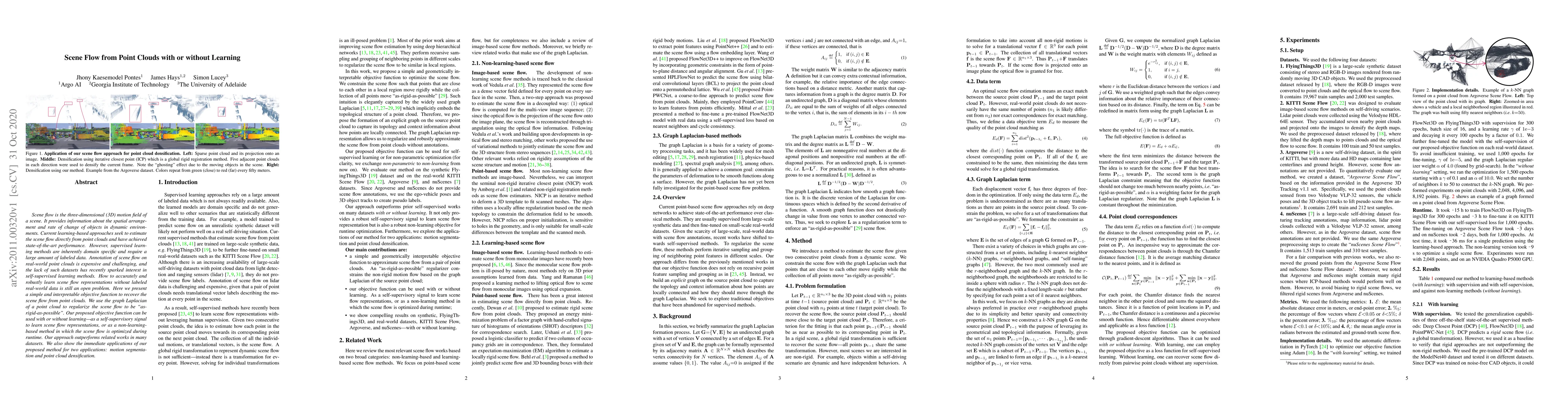 This paper proposes a simple objective function to recover scene flow from point clouds, using the graph Laplacian to regularize the flow to be as rigid as possible. The method can be used with or without learning, demonstrating competitive performance and applications in motion segmentation and point cloud densification.