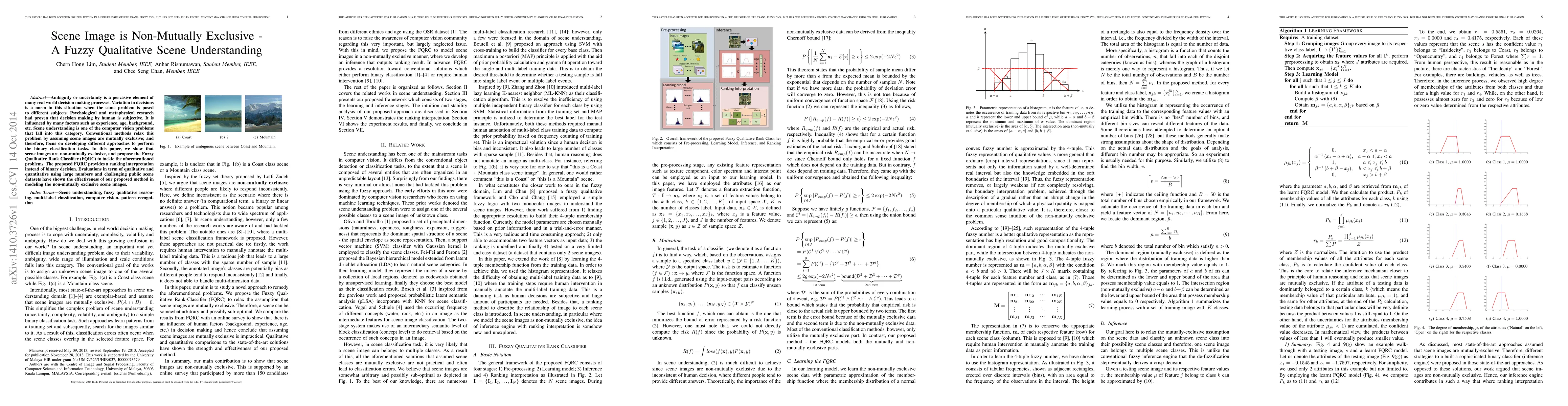 Ambiguity or uncertainty is a pervasive element of many real world decision making processes. Variation in decisions is a norm in this situation when the same problem is posed to different subjects. Psychological and metaphysical research had proven that decision making by human is subjective. It is influenced by many factors such as experience, age, background, etc. Scene understanding is one of the computer vision problems that fall into this category. Conventional methods relax this problem by assuming scene images are mutually exclusive; and therefore, focus on developing different approaches to perform the binary classification tasks. In this paper, we show that scene images are non-mutually exclusive, and propose the Fuzzy Qualitative Rank Classifier (FQRC) to tackle the aforementioned problems. The proposed FQRC provides a ranking interpretation instead of binary decision. Evaluations in term of qualitative and quantitative using large numbers and challenging public scene datasets have shown the effectiveness of our proposed method in modeling the non-mutually exclusive scene images.
