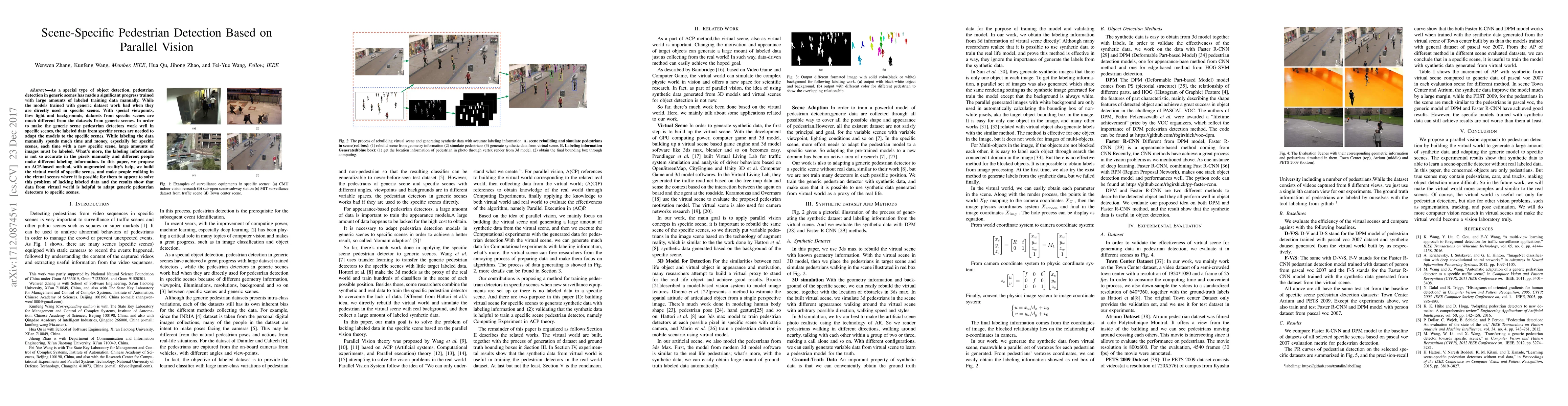 As a special type of object detection, pedestrian detection in generic scenes has made a significant progress trained with large amounts of labeled training data manually. While the models trained with generic dataset work bad when they are directly used in specific scenes. With special viewpoints, flow light and backgrounds, datasets from specific scenes are much different from the datasets from generic scenes. In order to make the generic scene pedestrian detectors work well in specific scenes, the labeled data from specific scenes are needed to adapt the models to the specific scenes. While labeling the data manually spends much time and money, especially for specific scenes, each time with a new specific scene, large amounts of images must be labeled. What's more, the labeling information is not so accurate in the pixels manually and different people make different labeling information. In this paper, we propose an ACP-based method, with augmented reality's help, we build the virtual world of specific scenes, and make people walking in the virtual scenes where it is possible for them to appear to solve this problem of lacking labeled data and the results show that data from virtual world is helpful to adapt generic pedestrian detectors to specific scenes.