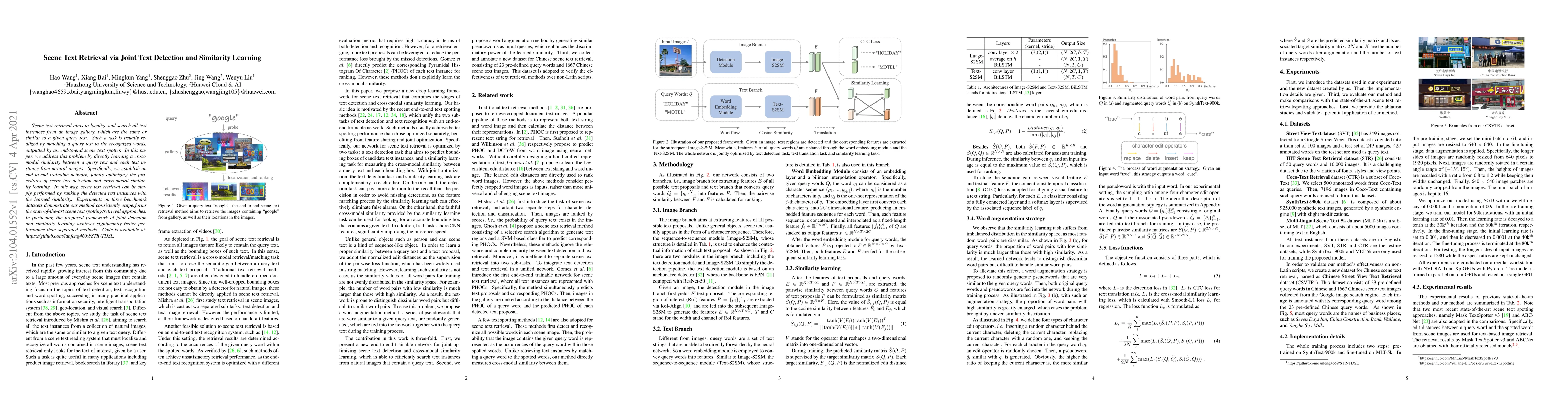 This paper proposes an end-to-end trainable network for scene text retrieval by jointly optimizing text detection and cross-modal similarity learning, outperforming state-of-the-art methods on benchmark datasets. The method's success lies in the integration of detection and similarity learning, yielding better results than separate approaches.