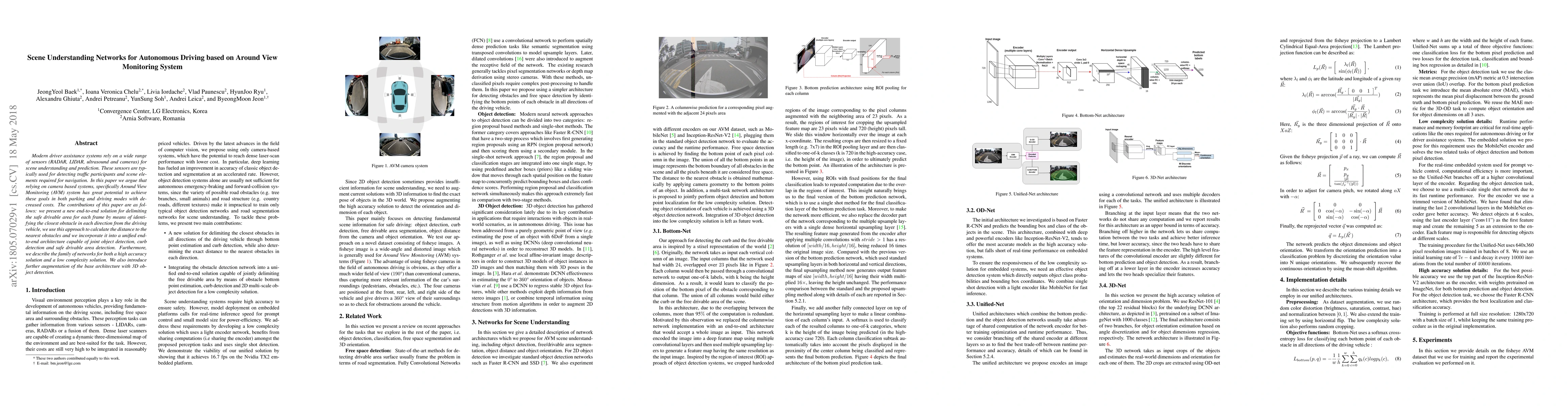 A new method for autonomous driving using Around View Monitoring systems improves scene understanding with joint object detection and safe drivable area calculation, offering both high accuracy and low complexity solutions.