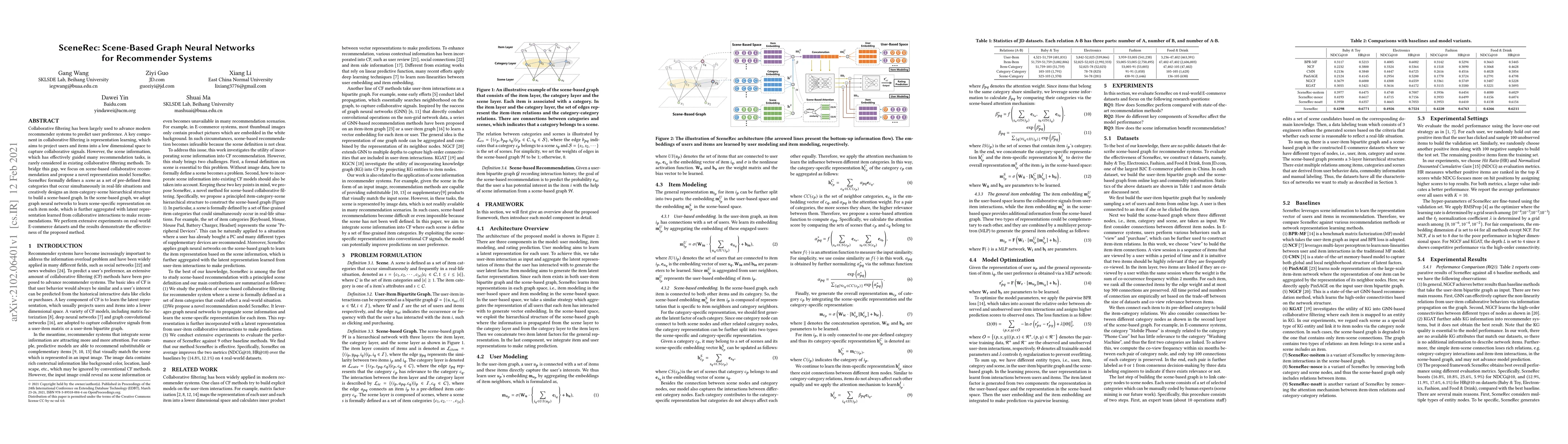 A new method called SceneRec uses scene-based graph neural networks to improve recommender systems by incorporating scene information into collaborative filtering. It shows promising results on real-world e-commerce datasets.