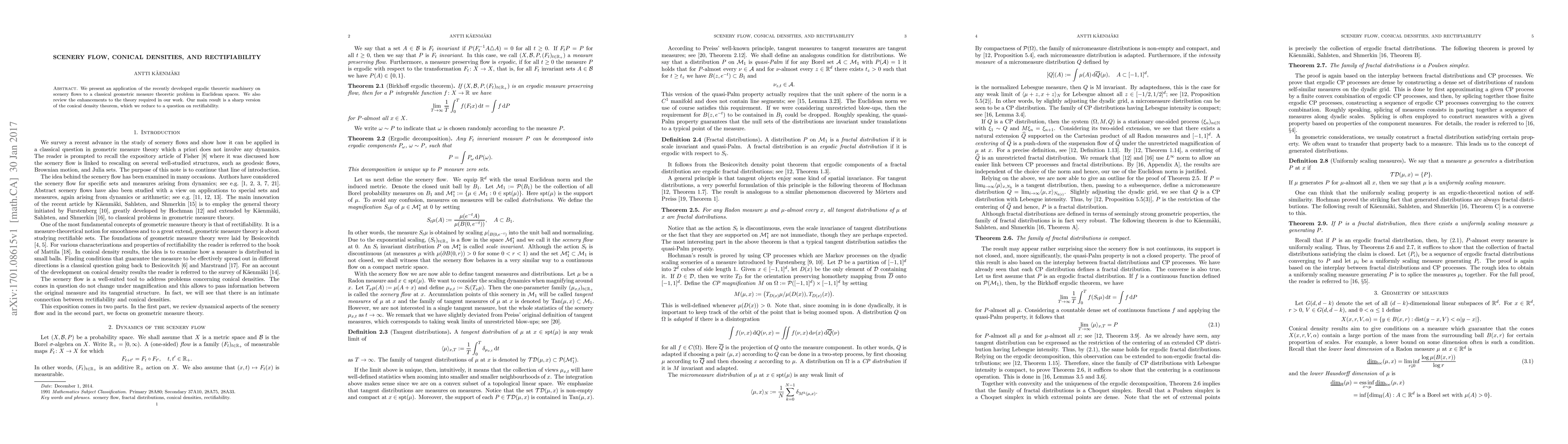 We present an application of the recently developed ergodic theoretic machinery on scenery flows to a classical geometric measure theoretic problem in Euclidean spaces. We also review the enhancements to the theory required in our work. Our main result is a sharp version of the conical density theorem, which we reduce to a question on rectifiability.