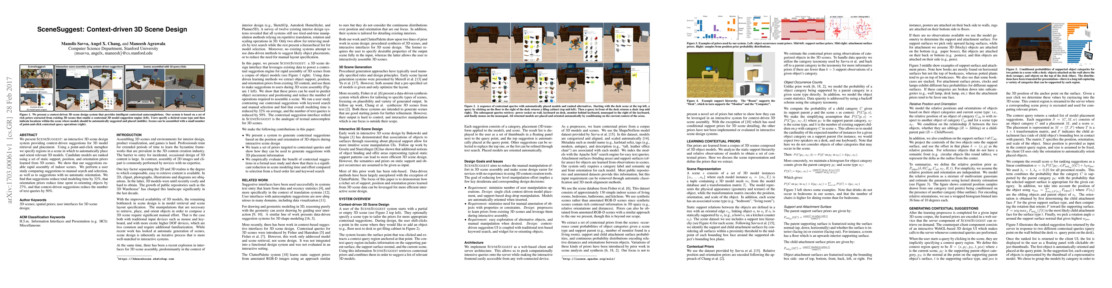 A new 3D scene design system called SceneSuggest reduces modeling time by 32% and re-orientation time by 27%, allowing for faster assembly of indoor scenes.