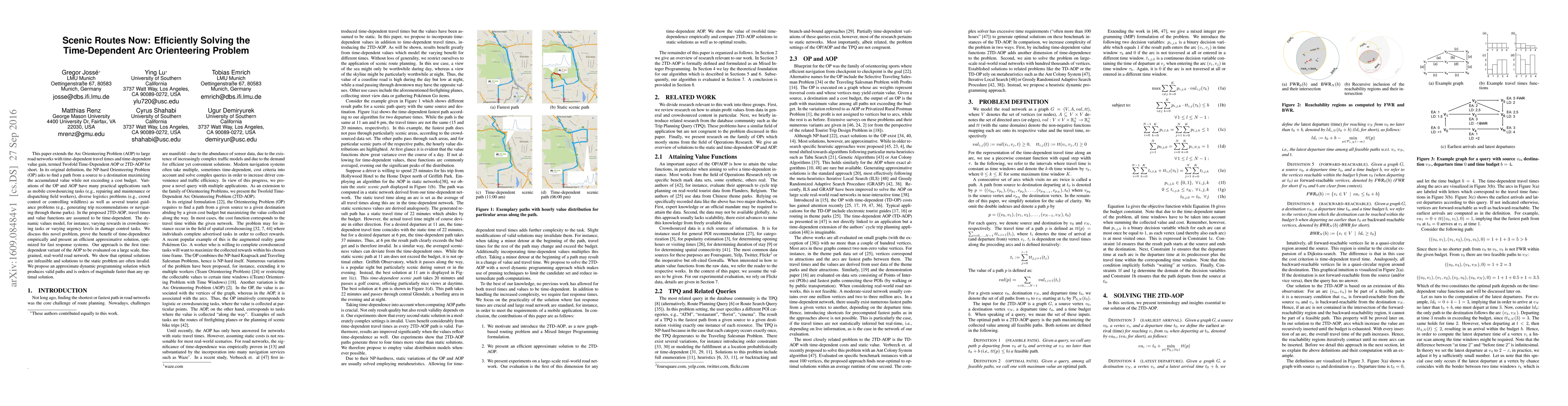 Researchers have developed a new approach to solve the Time-Dependent Arc Orienteering Problem, which optimizes paths in road networks with time-dependent travel times and value gains, achieving results that are orders of magnitude faster than traditional optimal solutions.