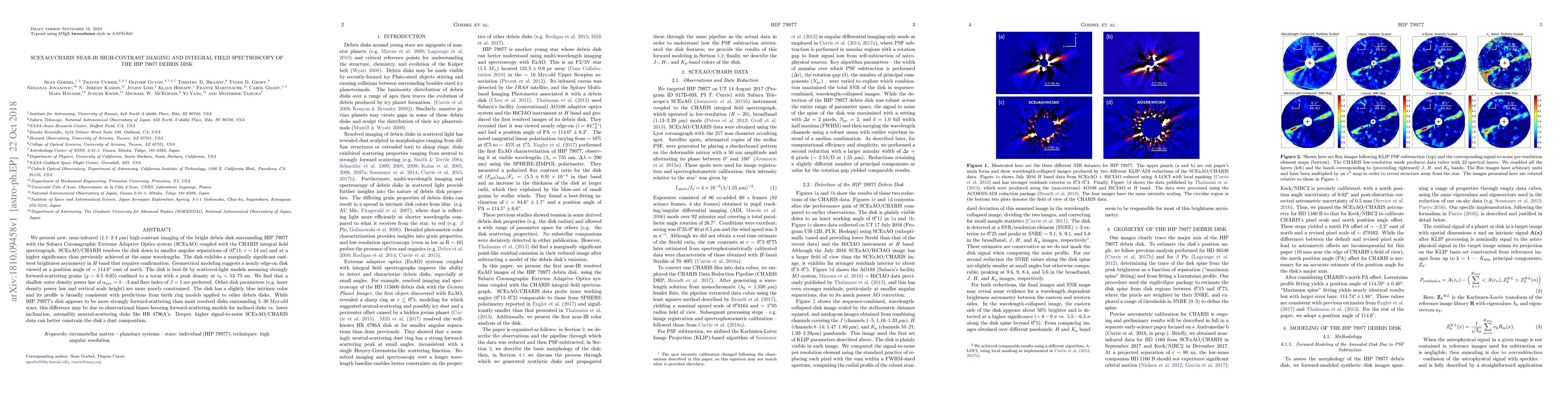Advanced high-contrast imaging and integral field spectroscopy techniques using SCExAO/CHARIS to resolve and characterize the HIP 79977 debris disk in near-infrared wavelengths.