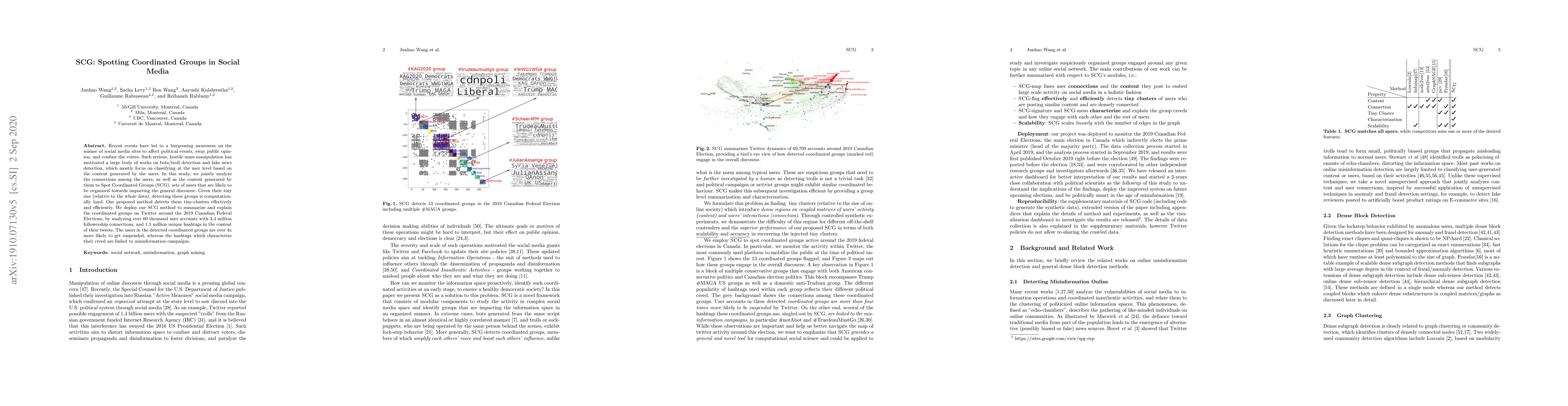 Recent events have led to a burgeoning awareness on the misuse of social media sites to affect political events, sway public opinion, and confuse the voters. Such serious, hostile mass manipulation has motivated a large body of works on bots/troll detection and fake news detection, which mostly focus on classifying at the user level based on the content generated by the users. In this study, we jointly analyze the connections among the users, as well as the content generated by them to Spot Coordinated Groups (SCG), sets of users that are likely to be organized towards impacting the general discourse. Given their tiny size (relative to the whole data), detecting these groups is computationally hard. Our proposed method detects these tiny-clusters effectively and efficiently. We deploy our SCG method to summarize and explain the coordinated groups on Twitter around the 2019 Canadian Federal Elections, by analyzing over 60 thousand user accounts with 3.4 million followership connections, and 1.3 million unique hashtags in the content of their tweets. The users in the detected coordinated groups are over 4x more likely to get suspended, whereas the hashtags which characterize their creed are linked to misinformation campaigns.