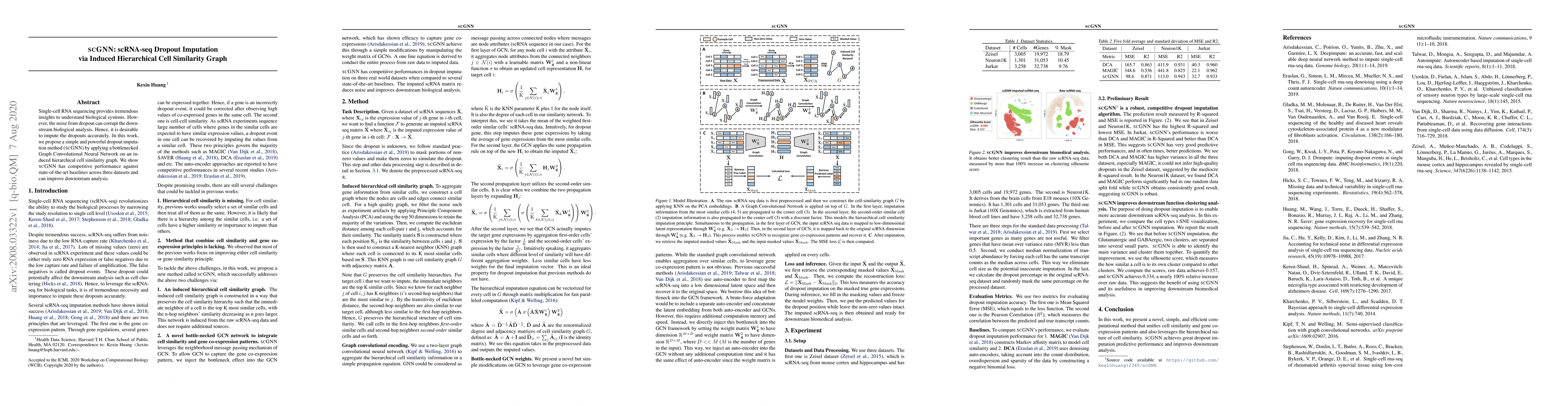 Single-cell RNA sequencing provides tremendous insights to understand biological systems. However, the noise from dropout can corrupt the downstream biological analysis. Hence, it is desirable to impute the dropouts accurately. In this work, we propose a simple and powerful dropout imputation method (scGNN) by applying a bottlenecked Graph Convolutional Neural Network on an induced hierarchical cell similarity graph. We show scGNN has competitive performance against state-of-the-art baselines across three datasets and can improve downstream analysis.