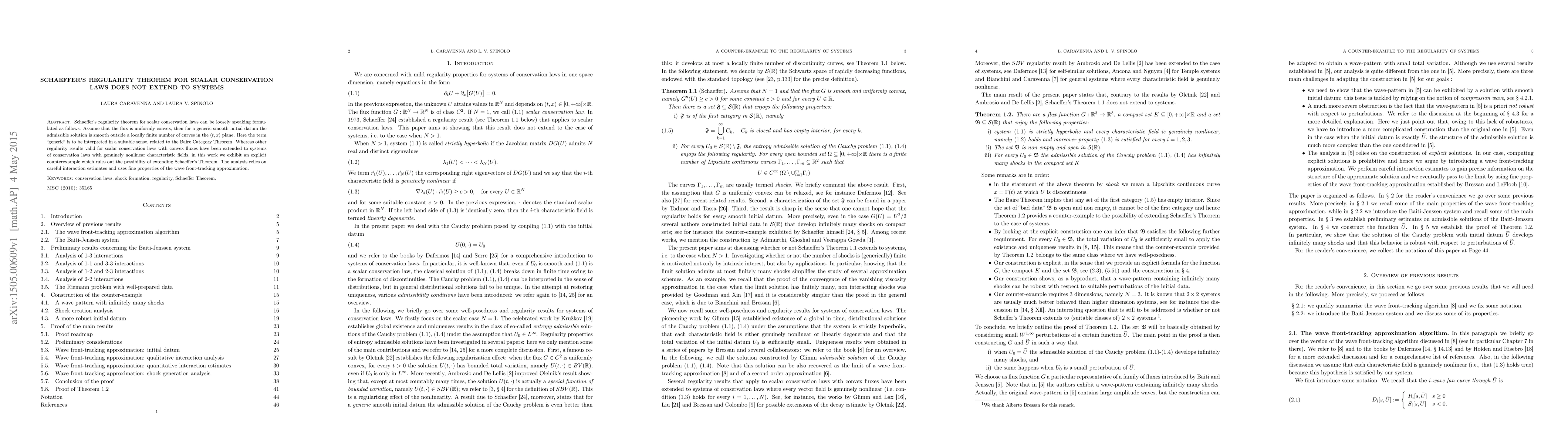 Summary: Schaeffer's regularity theorem for scalar conservation laws, which guarantees smooth solutions for generic initial data under uniform convexity, cannot be extended to systems of conservation laws, as demonstrated by an explicit counterexample using interaction estimates and wave front-tracking analysis.