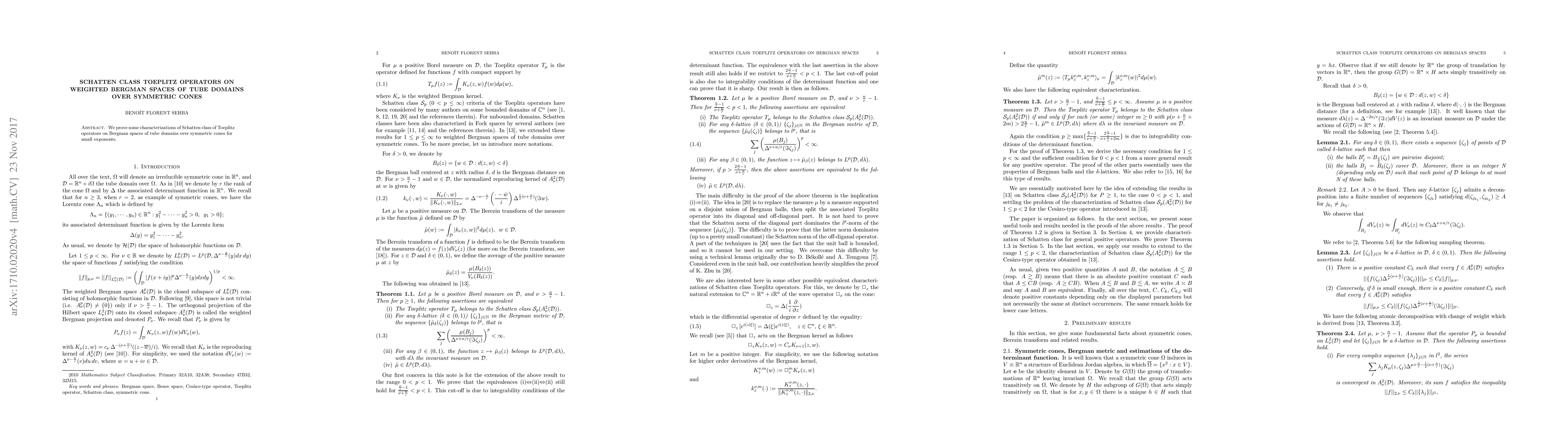 Summary: This paper provides characterizations of Schatten class Toeplitz operators on weighted Bergman spaces associated with tube domains over symmetric cones, focusing on operators with small exponents. The results contribute to the understanding of operator theory in the context of symmetric cones.