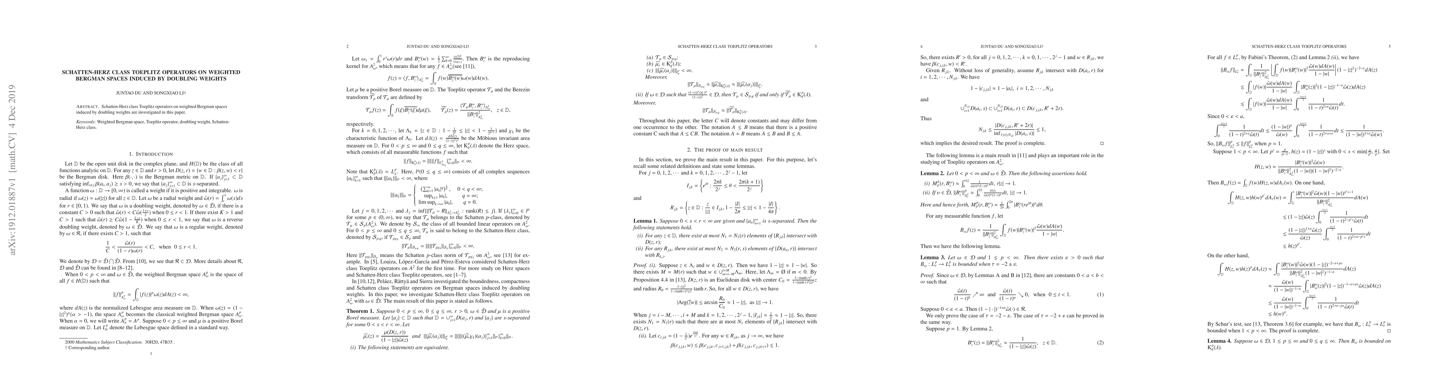 This paper studies Schatten-Herz class Toeplitz operators on weighted Bergman spaces, focusing on those induced by doubling weights to explore their properties and characteristics.