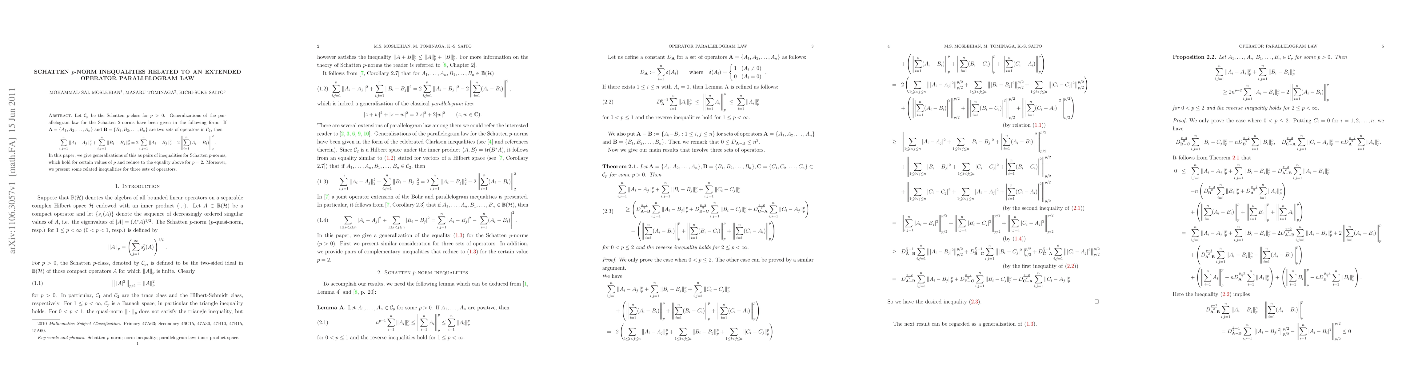 This paper generalizes the operator parallelogram law to Schatten $p$-norms, providing a set of inequalities for Schatten $p$-norms that hold for specific $p$ values and reduce to the classical equality for $p=2$. It also extends these inequalities to three sets of operators.
