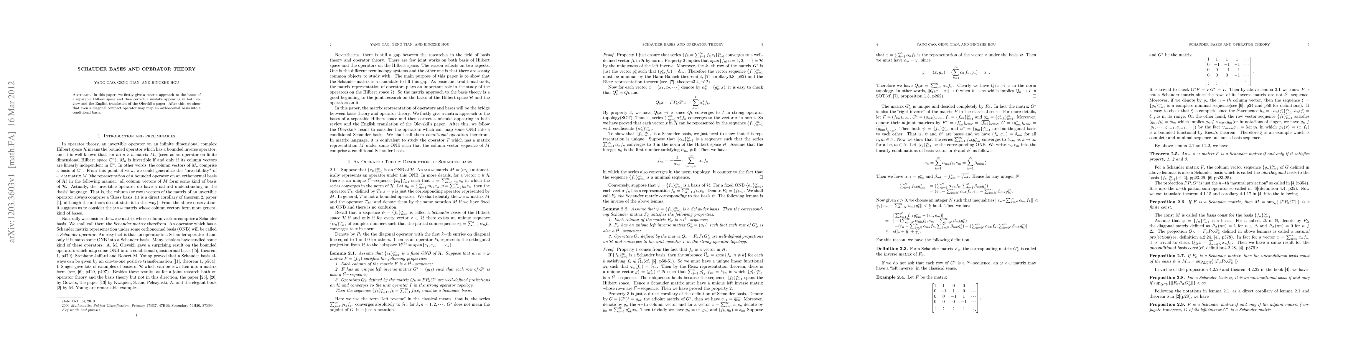 This paper explores Schauder bases in Hilbert spaces, correcting a mistake in Olevskii's work and demonstrating that even diagonal compact operators can map orthonormal bases to conditional bases.