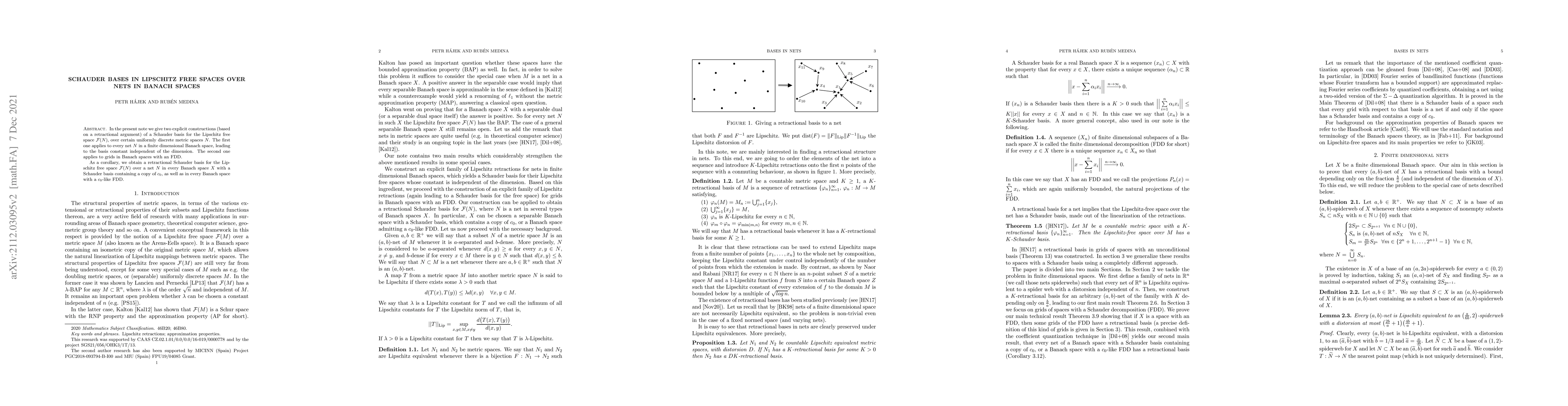 This paper constructs two Schauder bases for Lipschitz free spaces over nets in Banach spaces using retractional arguments. The first construction works for any finite-dimensional Banach space with basis constant independent of dimension, while the second applies to grids in Banach spaces with a functional decomposition.