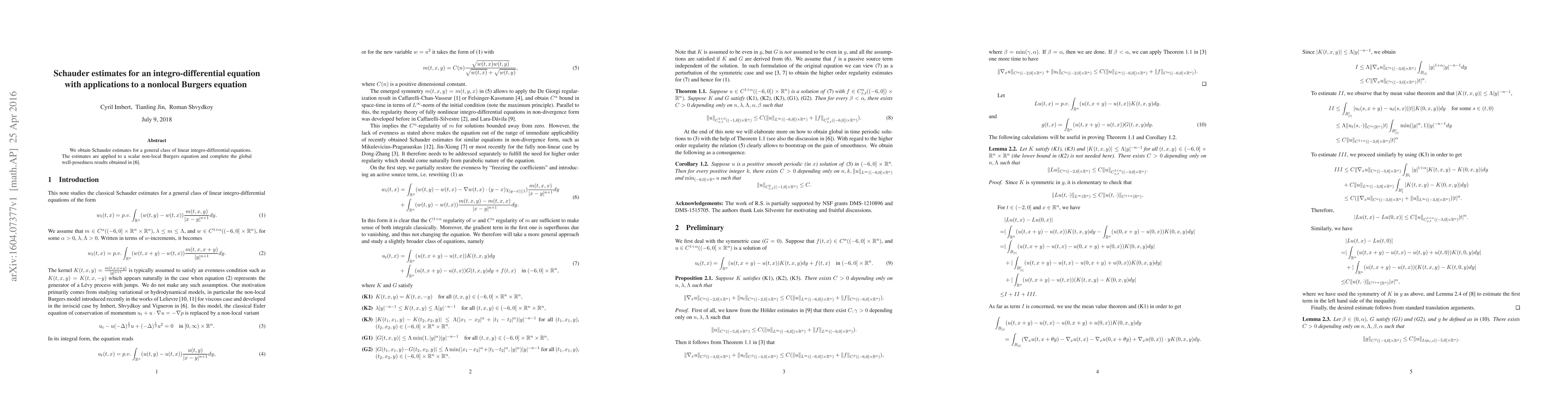 Summary: This paper derives Schauder estimates for linear integro-differential equations and applies them to a scalar non-local Burgers equation, complementing the global well-posedness results established in \cite{ISV}.