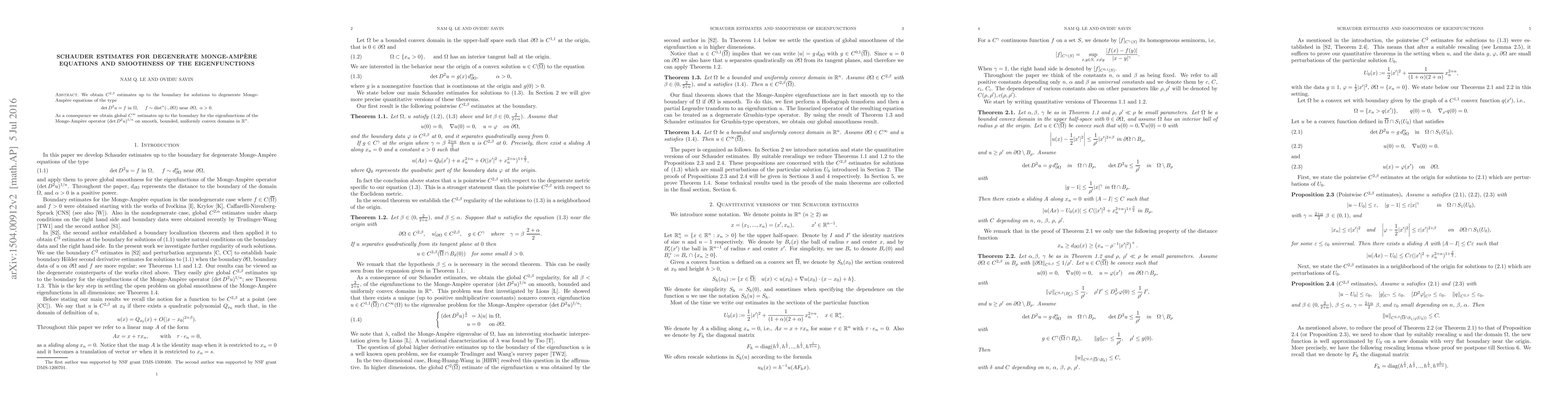This paper establishes $C^{2,\beta}$ boundary estimates for solutions to degenerate Monge-Ampère equations and provides global $C^\infty$ estimates up to the boundary for eigenfunctions of the Monge-Ampère operator on smooth, uniformly convex domains.