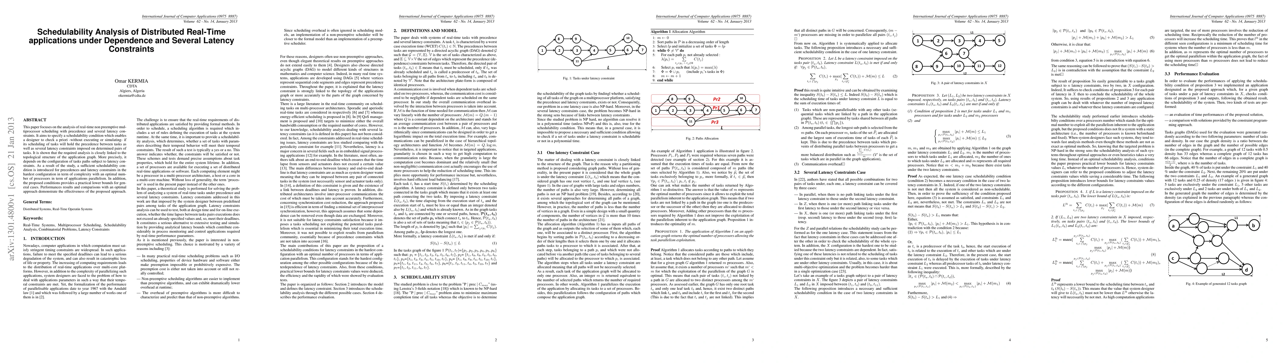 This paper introduces a schedulability condition for distributed real-time applications with precedence and latency constraints, which is closely linked to the application graph's topological structure and provides practical bounds for general cases.