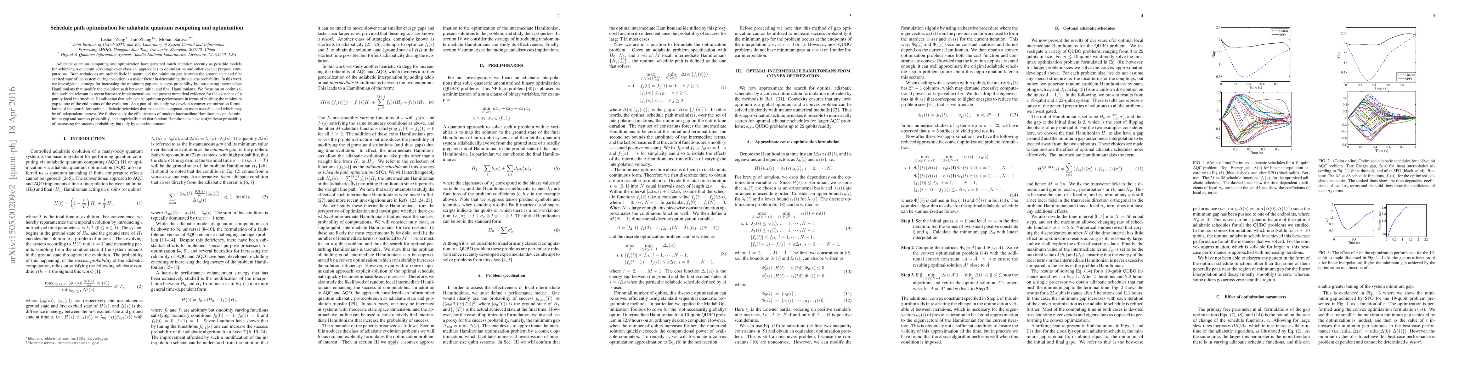 This paper explores strategies to optimize the adiabatic quantum computing process by introducing intermediate Hamiltonians to increase the minimum gap and success probability. It develops a convex optimization formulation for finding optimal adiabatic schedules and finds that random intermediate Hamiltonians can modestly improve success probability.