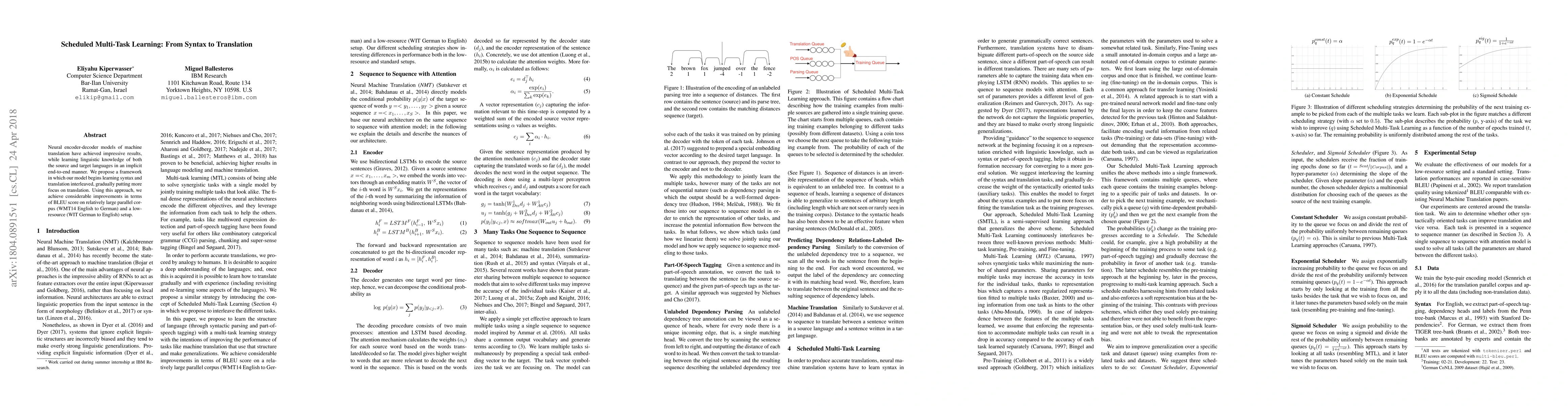 Neural encoder-decoder models of machine translation have achieved impressive results, while learning linguistic knowledge of both the source and target languages in an implicit end-to-end manner. We propose a framework in which our model begins learning syntax and translation interleaved, gradually putting more focus on translation. Using this approach, we achieve considerable improvements in terms of BLEU score on relatively large parallel corpus (WMT14 English to German) and a low-resource (WIT German to English) setup.
