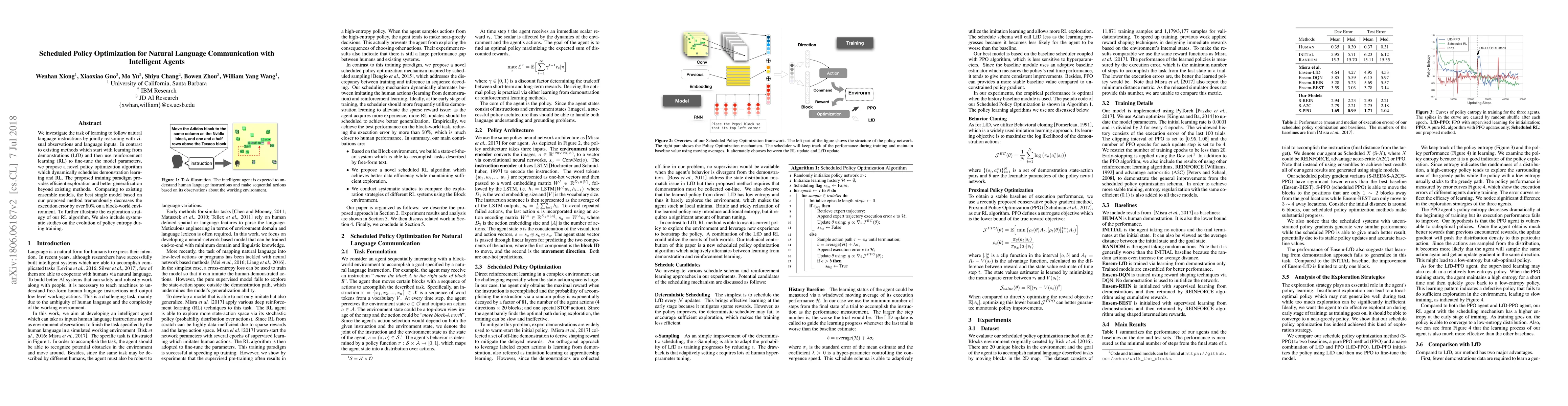 Researchers developed a novel policy optimization algorithm that combines demonstration learning and reinforcement learning to improve natural language communication with intelligent agents, achieving significant reductions in execution error.