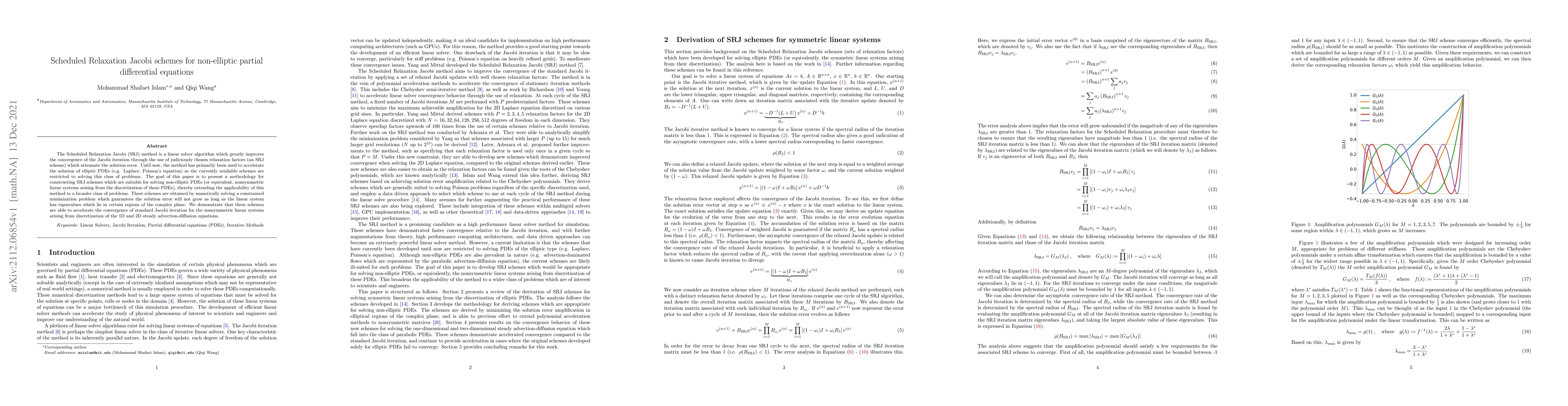 The Scheduled Relaxation Jacobi (SRJ) method is extended to accelerate the solution of non-elliptic PDEs by constructing SRJ schemes through a constrained minimization problem, demonstrating improved convergence for nonsymmetric linear systems from advection-diffusion equations.