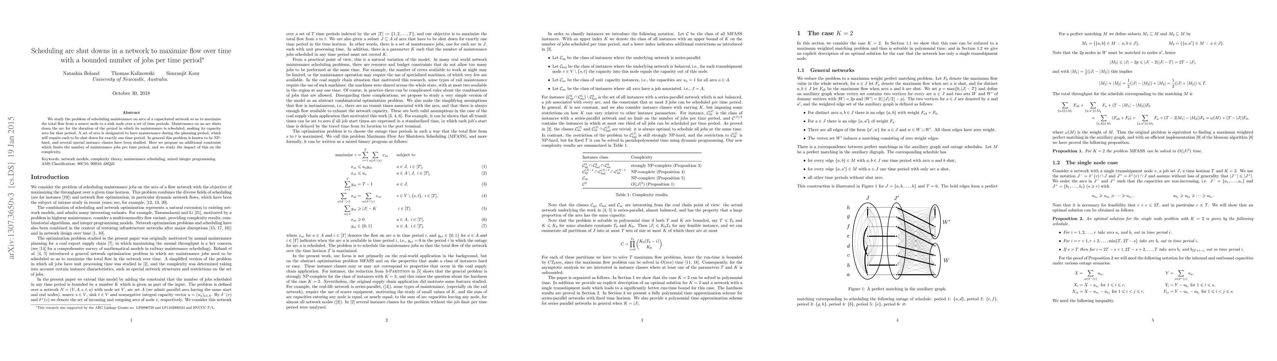 We study the problem of scheduling maintenance on arcs of a capacitated network so as to maximize the total flow from a source node to a sink node over a set of time periods. Maintenance on an arc shuts down the arc for the duration of the period in which its maintenance is scheduled, making its capacity zero for that period. A set of arcs is designated to have maintenance during the planning period, which will require each to be shut down for exactly one time period. In general this problem is known to be NP-hard, and several special instance classes have been studied. Here we propose an additional constraint which limits the number of maintenance jobs per time period, and we study the impact of this on the complexity.