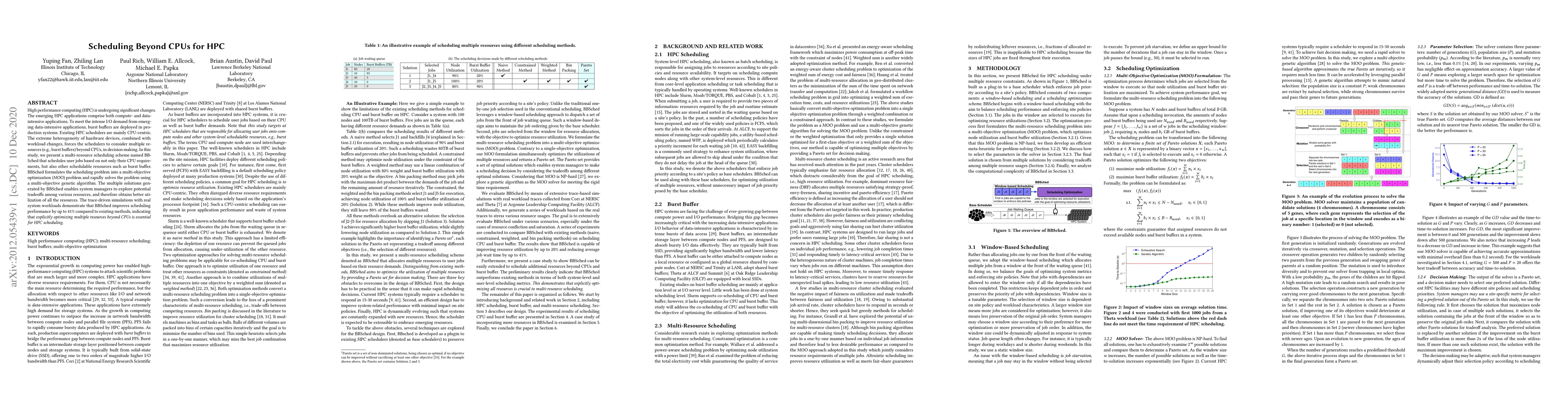This paper introduces BBSched, a multi-resource scheduling scheme for high performance computing (HPC) that optimizes beyond CPU resources, like burst buffers, to meet the needs of data-intensive applications. Using a multi-objective genetic algorithm, BBSched formulates scheduling as an optimization problem and improves performance by up to 41% compared to existing CPU-centric schedulers.