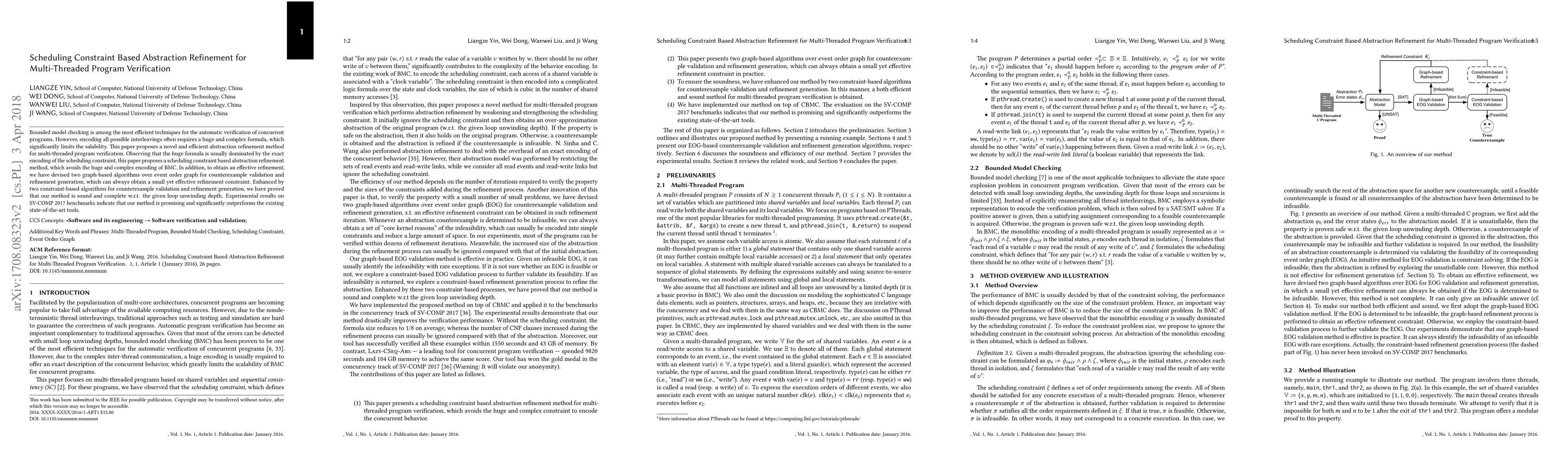 This paper proposes an efficient abstraction refinement method for verifying multi-threaded programs, focusing on simplifying the encoding of scheduling constraints in bounded model checking. The proposed method, enhanced with graph-based algorithms for counterexample validation and refinement, shows promising results in outperforming existing tools on \svcompc benchmarks.