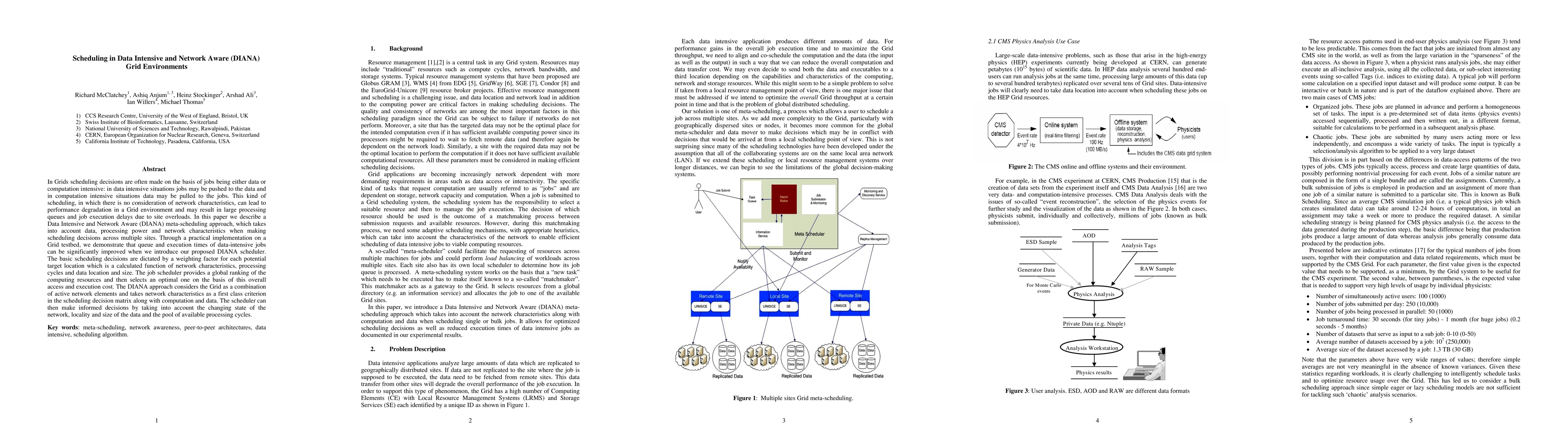 This paper proposes a DIANA meta-scheduling approach for Grid environments that considers data, processing power, and network characteristics to optimize scheduling decisions, significantly reducing queue and execution times for data-intensive jobs. The scheduler evaluates potential target locations based on a calculated weighting factor, prioritizing optimal resource allocation.