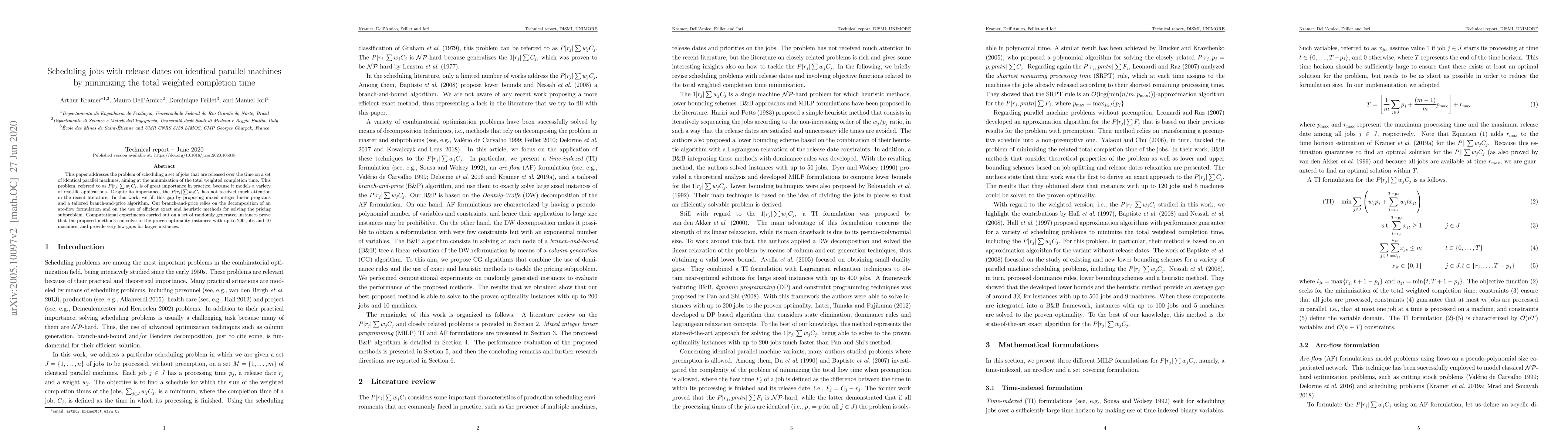 This paper proposes mixed integer linear programs and a tailored branch-and-price algorithm to minimize total weighted completion time for scheduling jobs with release dates on identical parallel machines. Computational experiments show the methods can solve instances up to 200 jobs and 10 machines optimally and provide good approximations for larger instances.