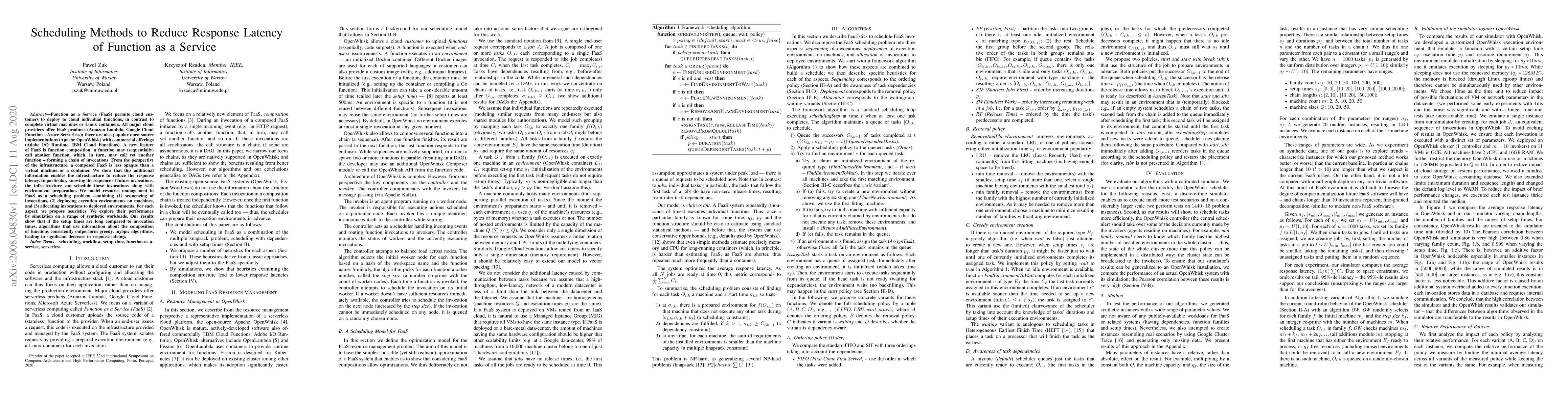 Function as a Service (FaaS) permits cloud customers to deploy to cloud individual functions, in contrast to complete virtual machines or Linux containers. All major cloud providers offer FaaS products (Amazon Lambda, Google Cloud Functions, Azure Serverless); there are also popular open-source implementations (Apache OpenWhisk) with commercial offerings (Adobe I/O Runtime, IBM Cloud Functions). A new feature of FaaS is function composition: a function may (sequentially) call another function, which, in turn, may call yet another function - forming a chain of invocations. From the perspective of the infrastructure, a composed FaaS is less opaque than a virtual machine or a container. We show that this additional information enables the infrastructure to reduce the response latency. In particular, knowing the sequence of future invocations, the infrastructure can schedule these invocations along with environment preparation. We model resource management in FaaS as a scheduling problem combining (1) sequencing of invocations, (2) deploying execution environments on machines, and (3) allocating invocations to deployed environments. For each aspect, we propose heuristics. We explore their performance by simulation on a range of synthetic workloads. Our results show that if the setup times are long compared to invocation times, algorithms that use information about the composition of functions consistently outperform greedy, myopic algorithms, leading to significant decrease in response latency.