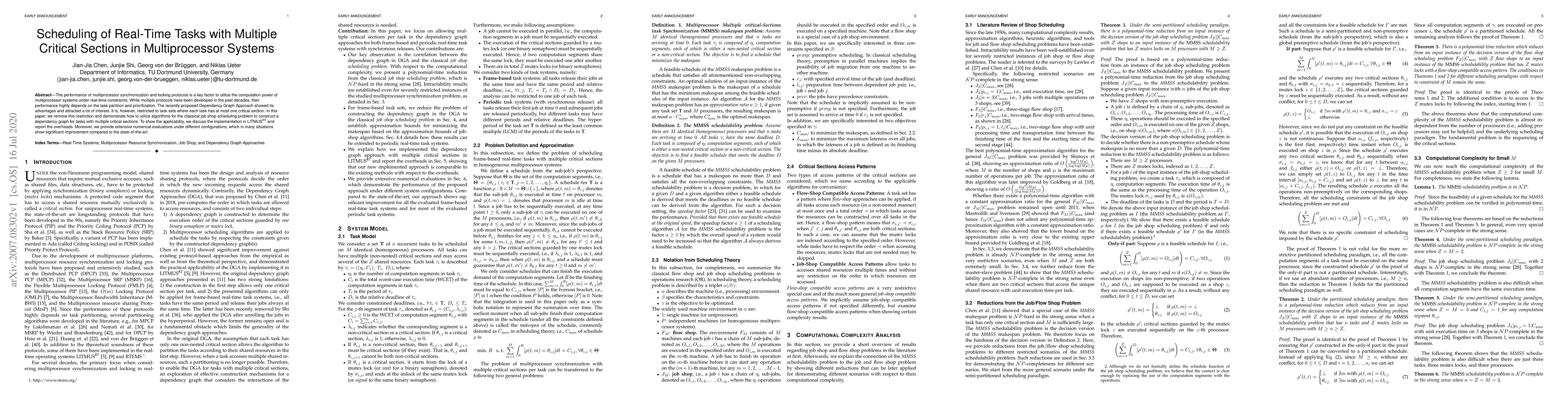 This paper proposes an extension of the Dependency Graph Approach to handle real-time tasks with multiple critical sections in multiprocessor systems, utilizing job shop scheduling algorithms. The implementation in Litmus^{RT} and extensive evaluations demonstrate significant performance improvements over existing methods.