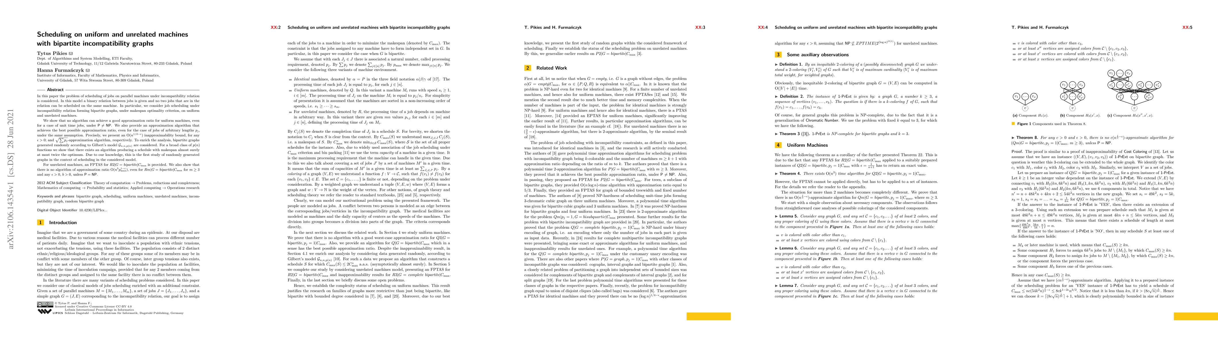 This research paper investigates scheduling on parallel machines under incompatibility relation, showing no algorithm can achieve a good approximation ratio for uniform machines but providing an $O(n^{1/2- heta})$ bound and $ extstyleoxed{ ext{sqrt}(p_{sum})}$.