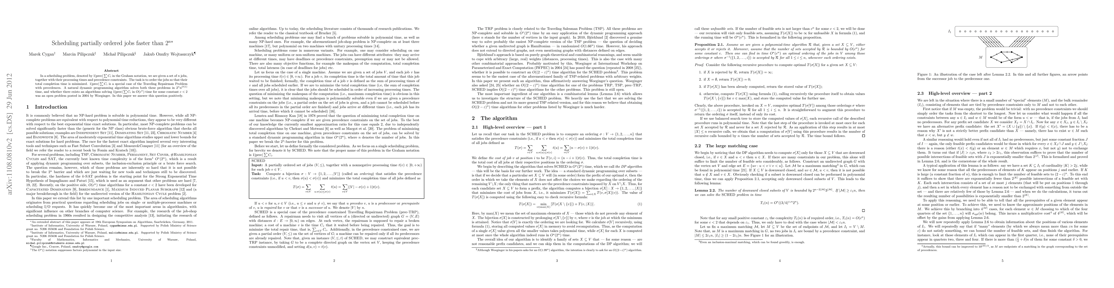 Researchers have developed an algorithm that solves the SCHED problem, a variant of the Traveling Repairman Problem with precedences, in O(c^n) time for some constant c < 2, solving an open problem from 2004.