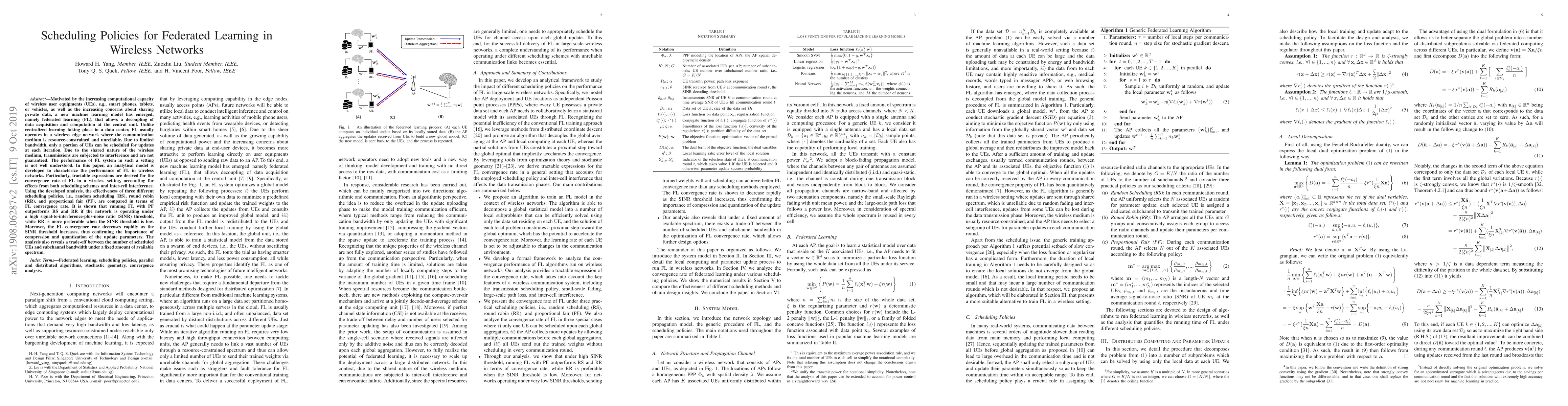 This paper develops an analytical model for federated learning (FL) in wireless networks, comparing the effectiveness of three scheduling policies: random scheduling, round robin, and proportional fair. The study finds that proportional fair outperforms under high signal-to-interference-plus-noise ratio, while round robin is better at low ratios. The convergence rate decreases with higher SINR thresholds, highlighting the need for parameter compression.